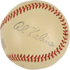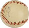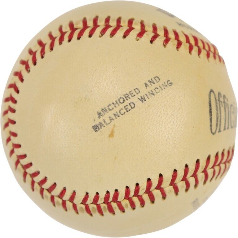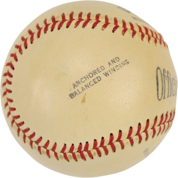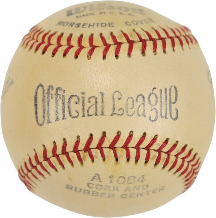 This Wilson Official League "Al Kaline" edition baseball features the single signature of Hall of Fame second baseman Nellie Fox. Signed on the sweet spot in blue, Fox's signature is faded but still has a great overall appearance. Full letter PSA DNA COA.