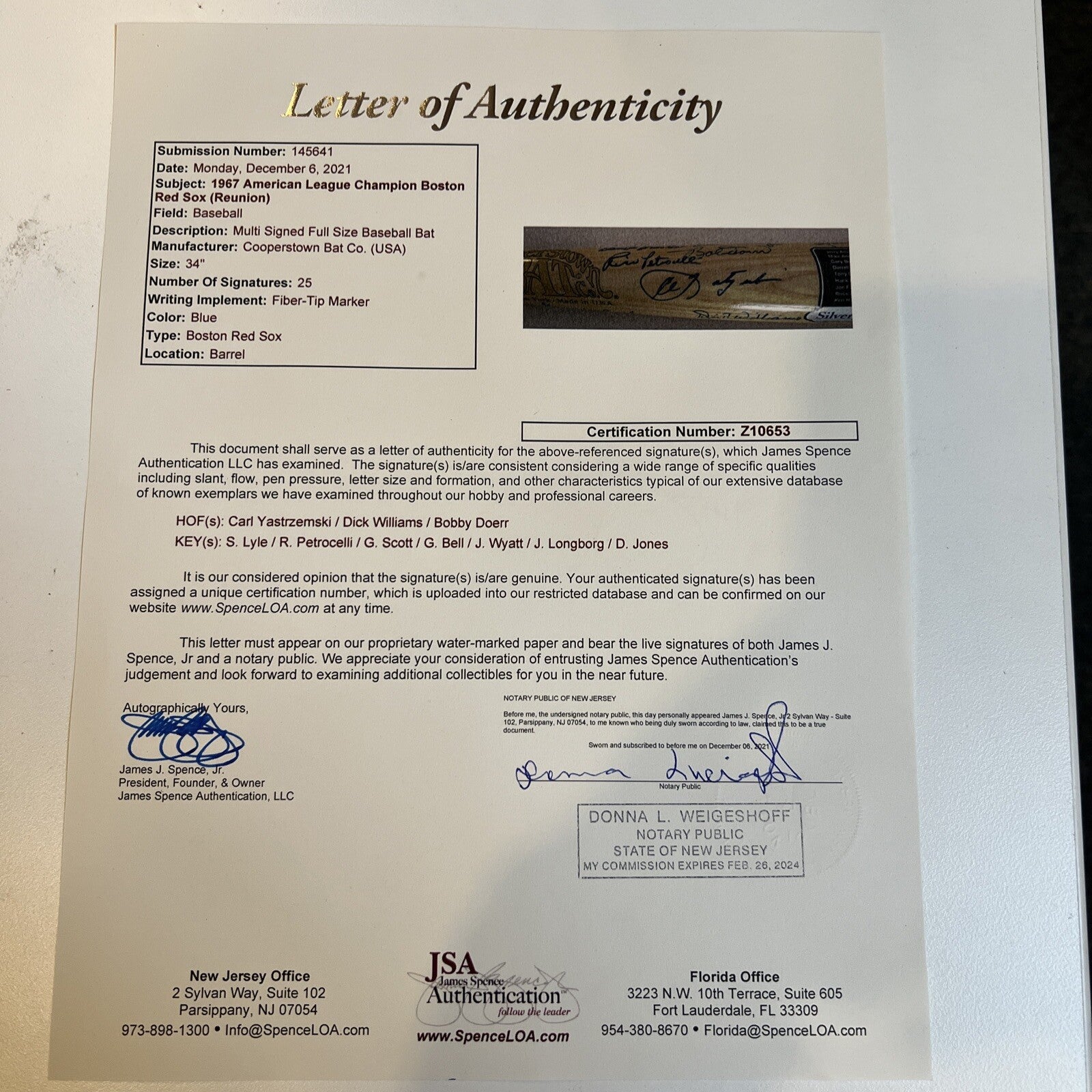 Nice Carl Yastrzemski Boston Red Sox Greats Signed Cooperstown Bat With JSA COA. 25 signatures in total. I had JSA issue a new COA indicating that it is a 1967 AL Champs team bat. See the photos for the new letter.