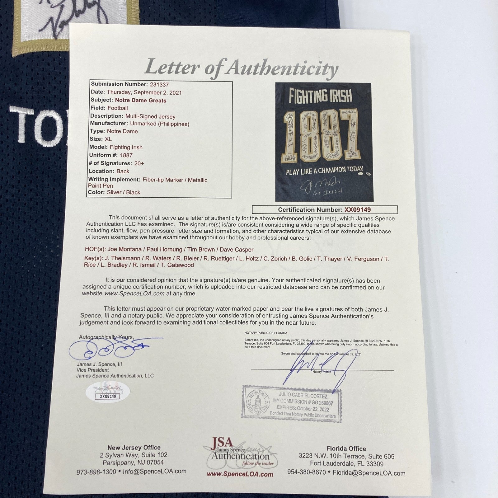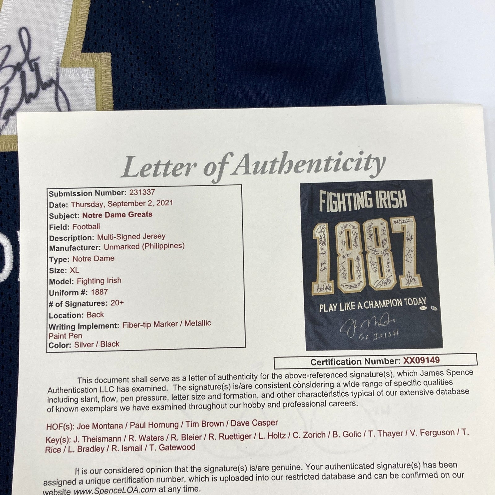 Notre Dame Fighting Irish Legends Multi Signed Jersey 20+ Sigs JSA Joe Montana