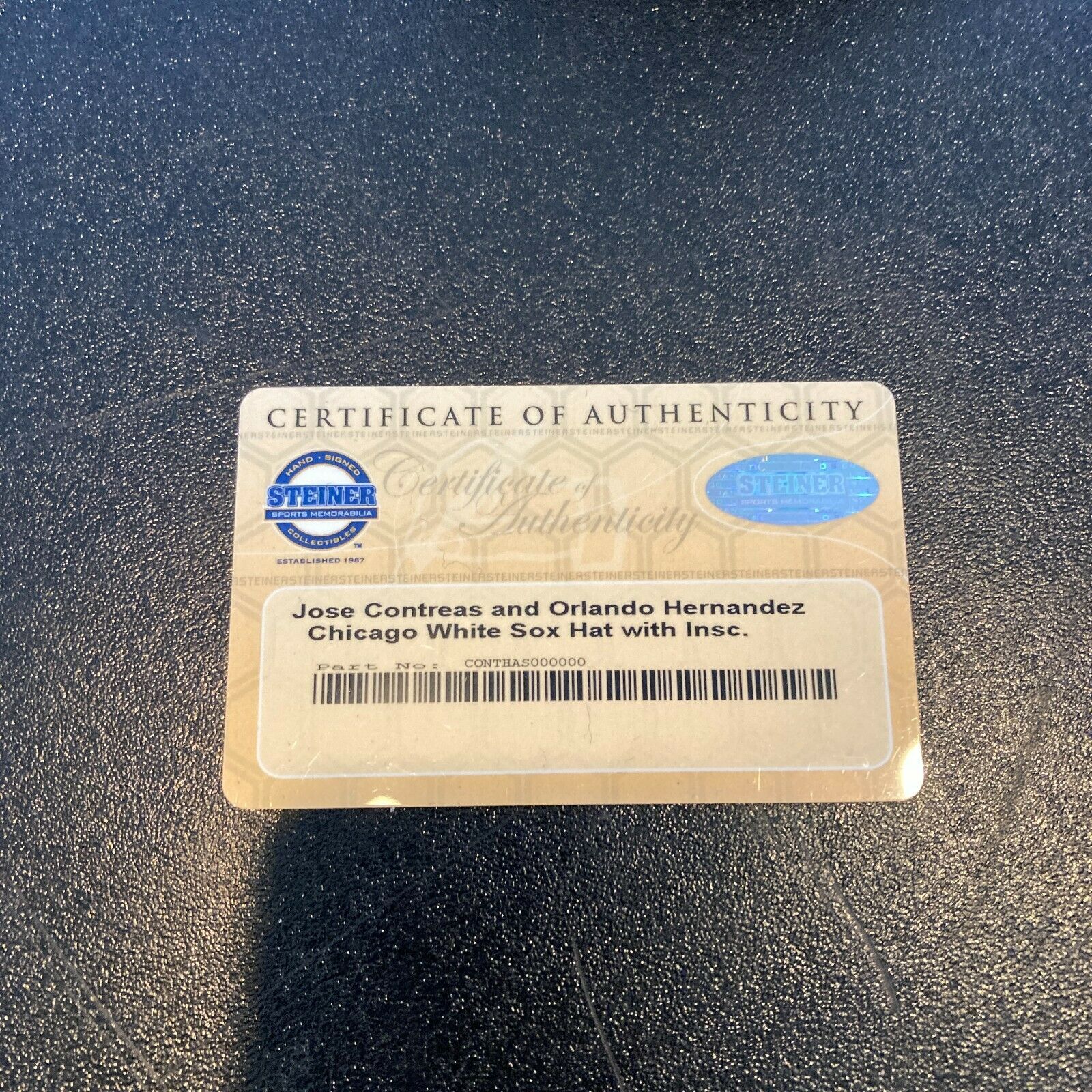 Orlando Hernandez Jose Contreras 2005 W.S. Signed Chicago White Sox Hat Steiner