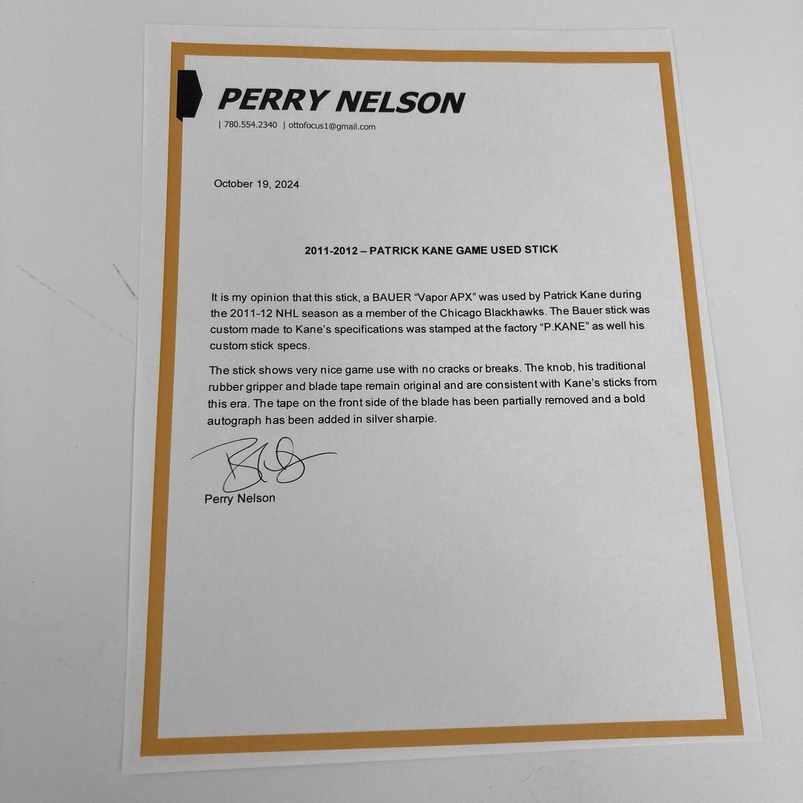 2011-12 Patrick Kane Game Used & Signed Hockey Stick - The Grice Brothers Collection.