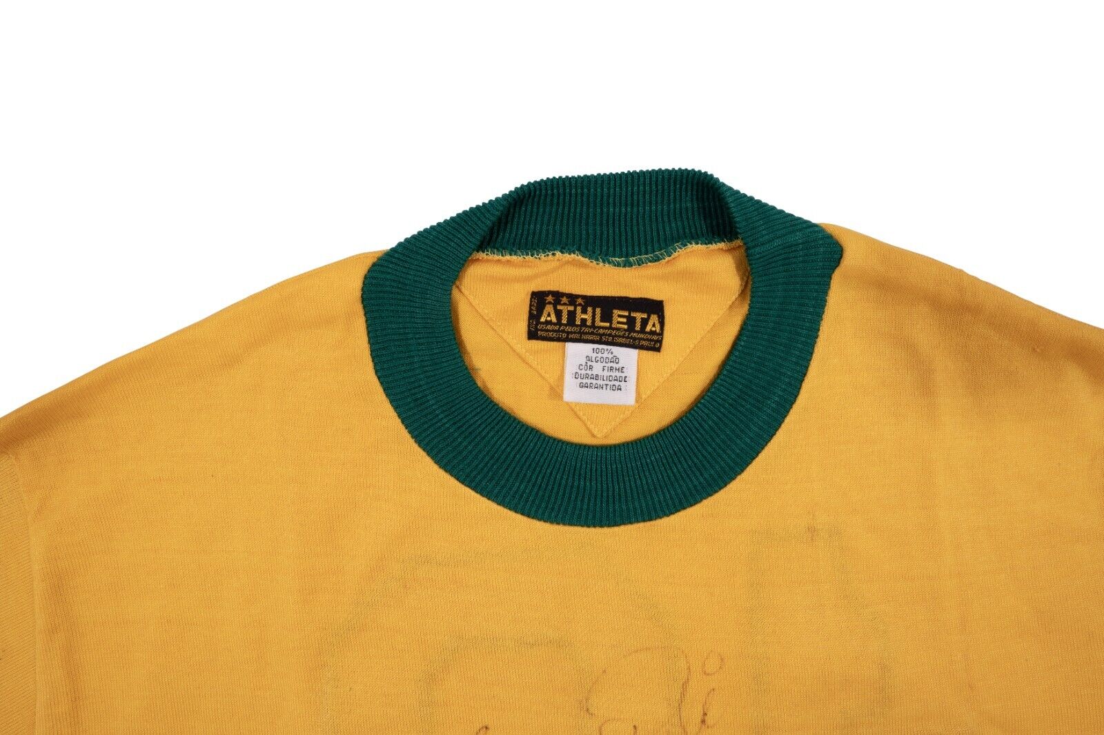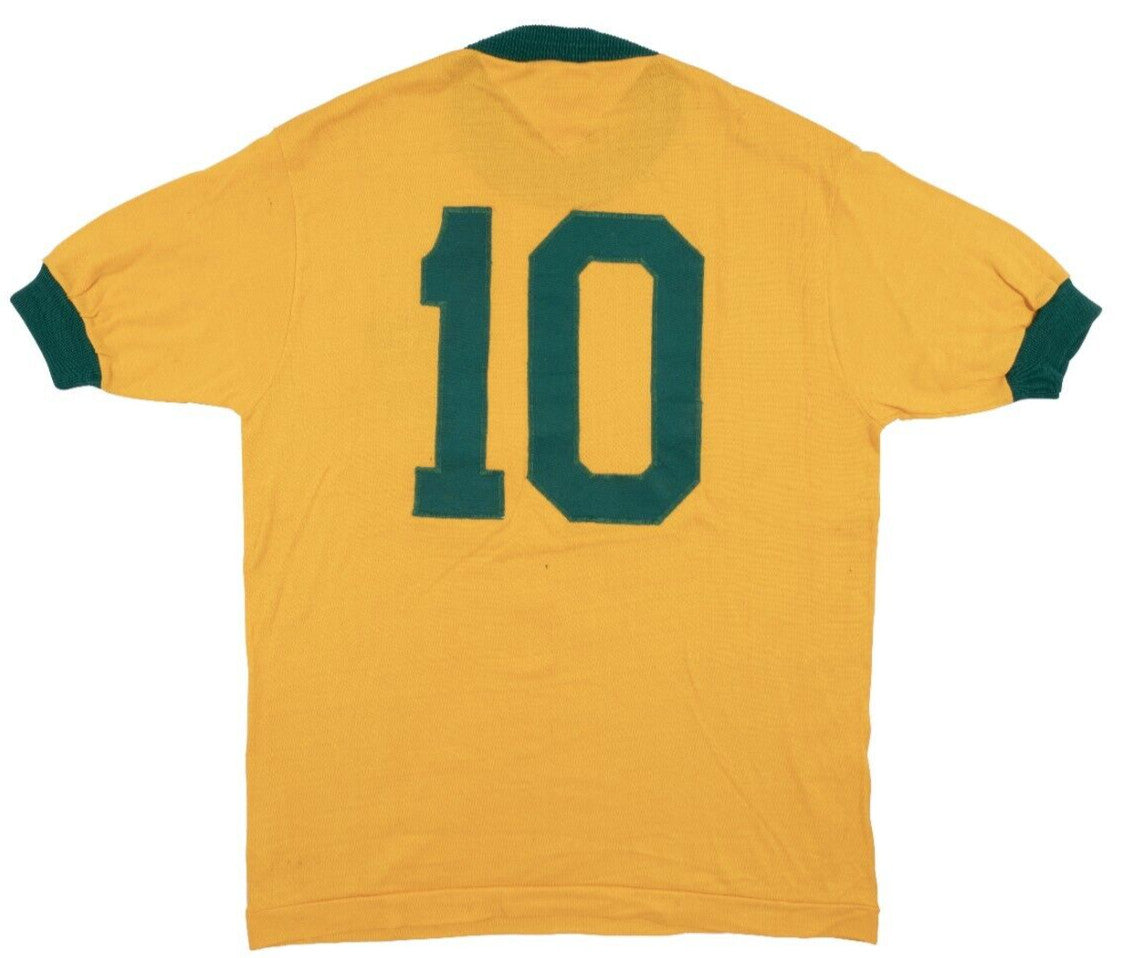Considered by many as the greatest football player of all time, Edson Arantes do Nascimento, commonly known as Pelé, was honored with the title of Football Player of the Century by the International Federation of Football History & Statistics (IFFHS). In addition, he was named "Athlete of the Century" by the International Olympic Committee and Reuters News Agency in 1999. This particular Pelé jersey, adorned with yellow and green accents, was issued during his final years with the Brazil National Team in 1970-71, but most likely not worn in an official match.