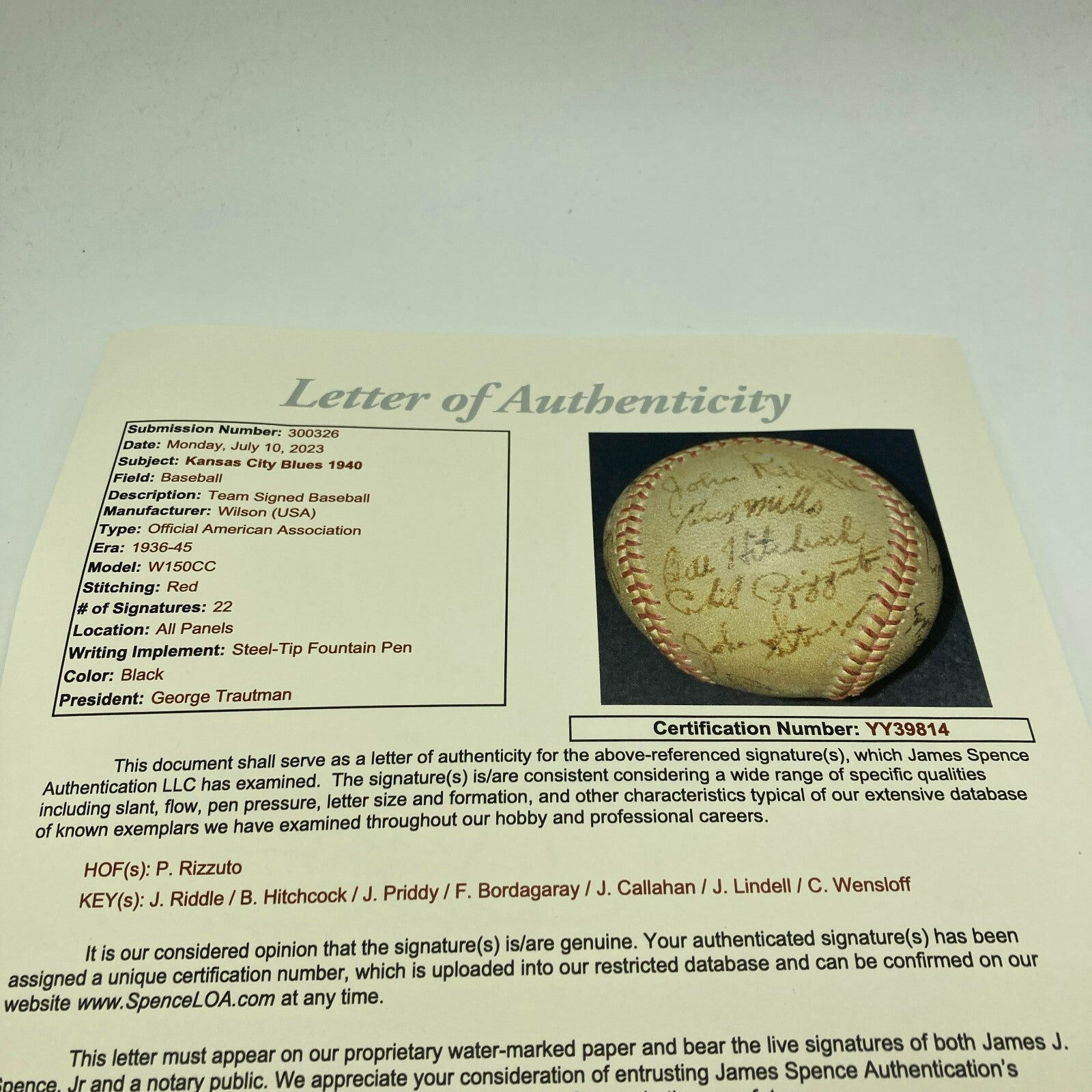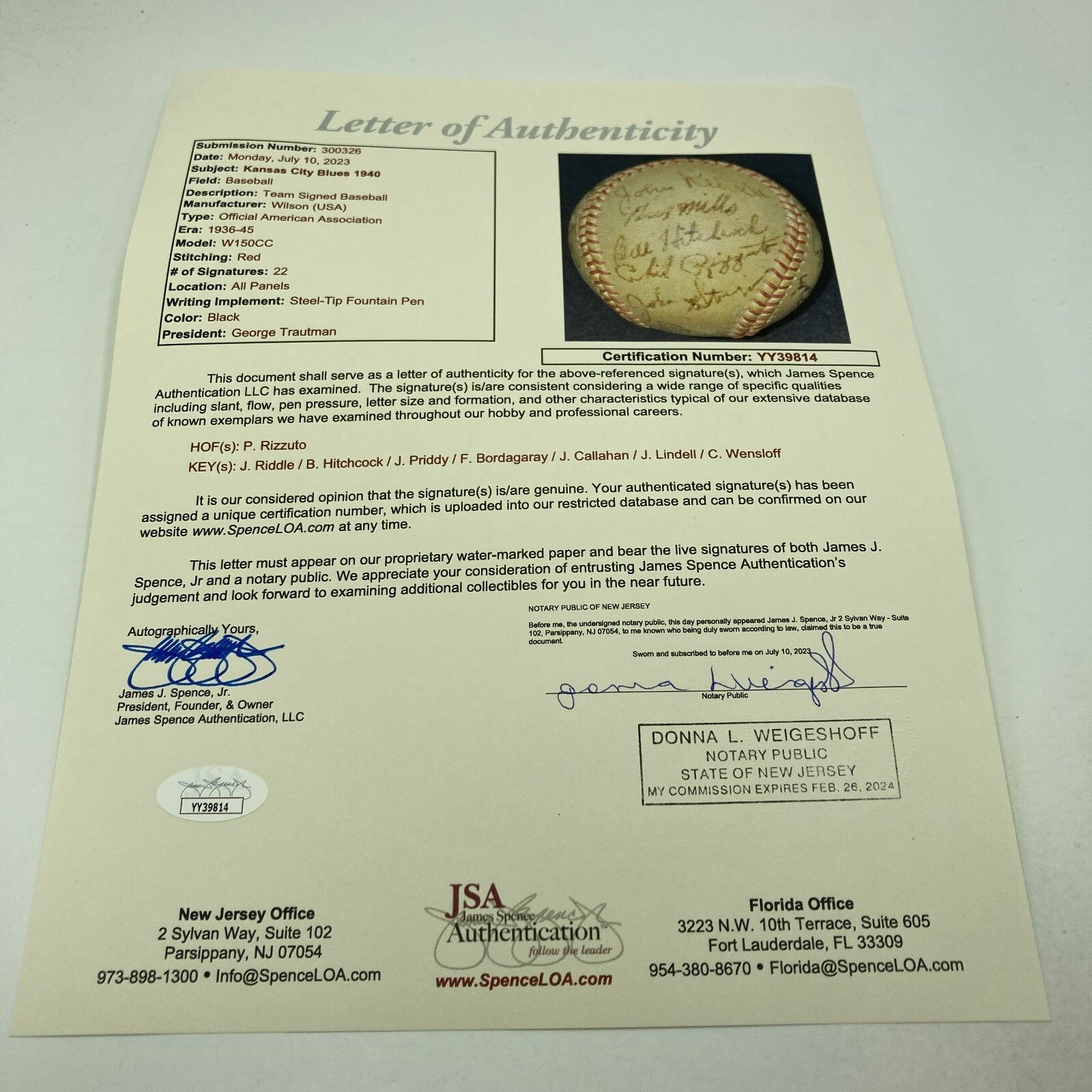 Phil Rizzuto 1940 Kansas City Blues Rookie Minor League Team Signed Baseball JSA