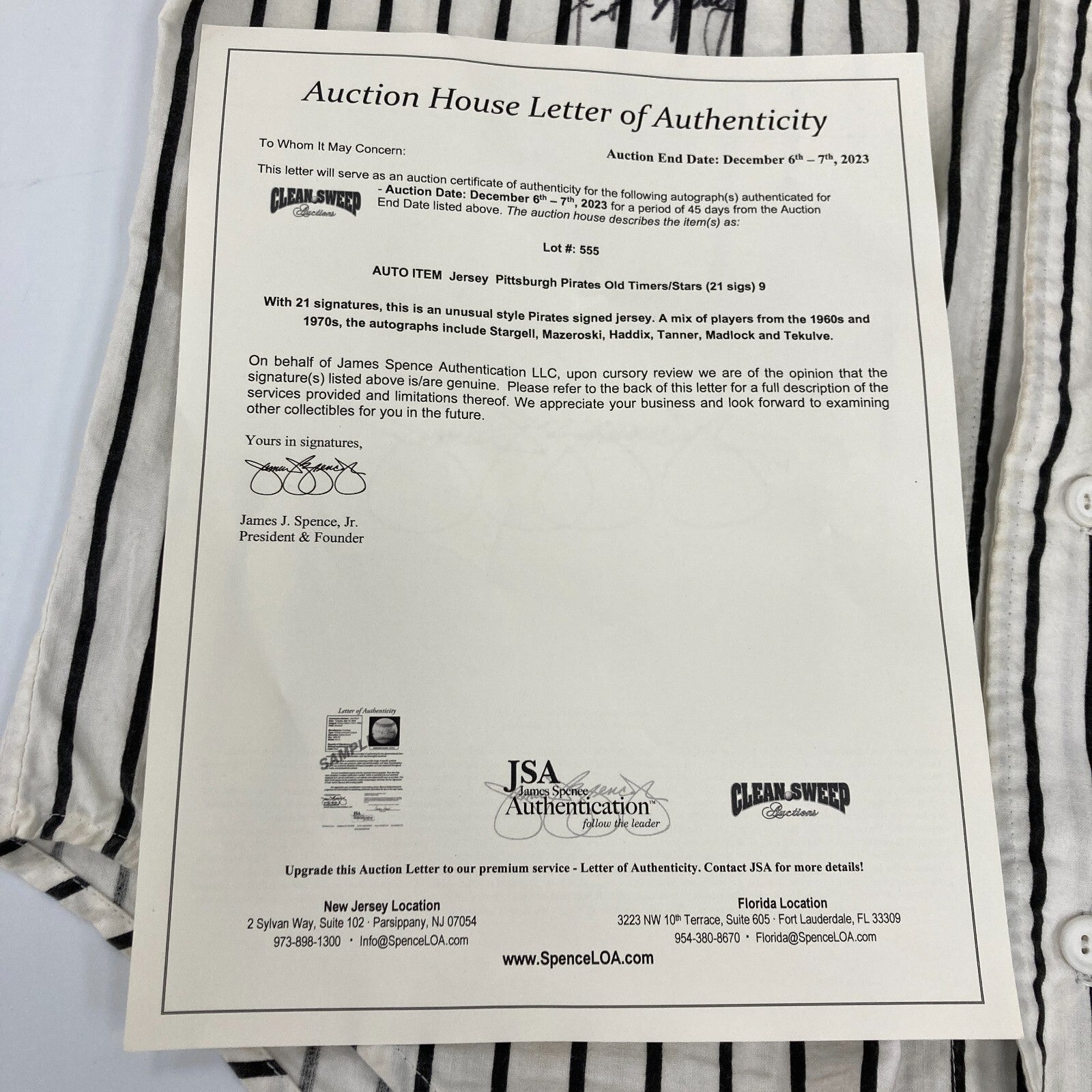 Pittsburgh Pirates Legends Signed Jersey With Willie Stargell, Harvey Haddix, Bill Mazeroski, Jeff Bagwell and many others. Comes with JSA COA.