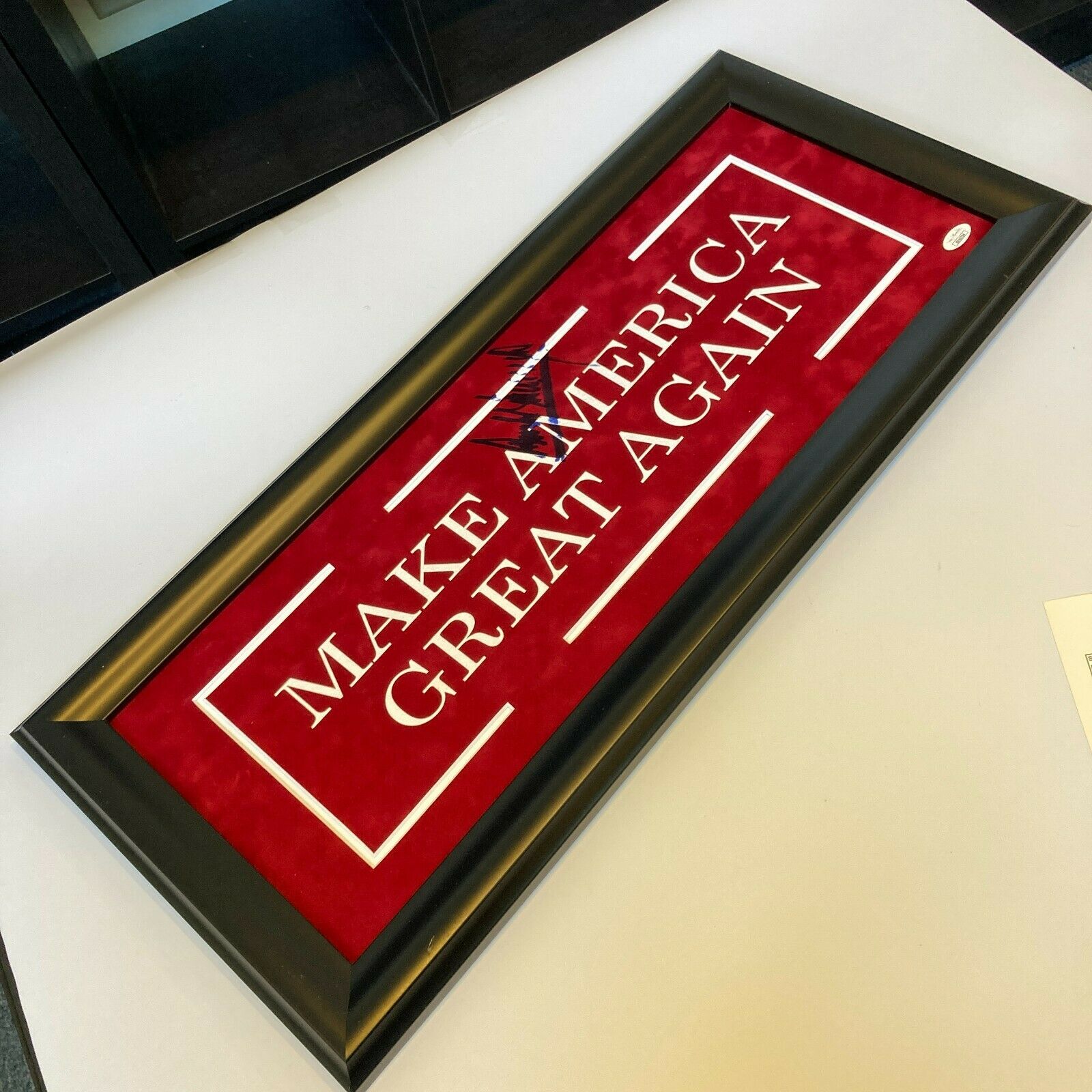 President Donald Trump Signed Make America Great Again 12x27 Framed Sign JSA COA