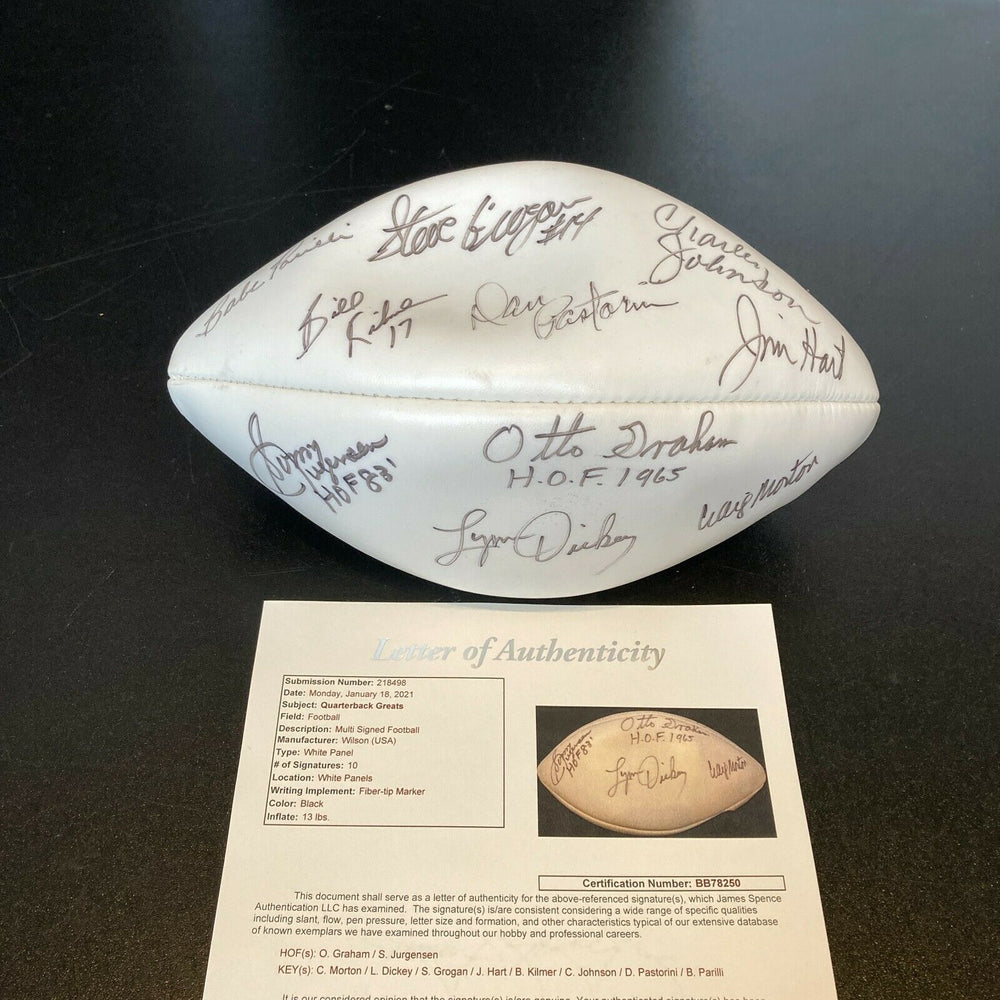 Click or scroll to zoom Tap or pinch to zoom Click or scroll to zoom Tap or pinch to zoom Click or scroll to zoom Tap or pinch to zoom Click or scroll to zoom Tap or pinch to zoom Click or scroll to zoom Tap or pinch to zoom Click or scroll to zoom Tap or pinch to zoom Click or scroll to zoom Tap or pinch to zoom Quarterback Legends Multi Signed Football Sonny Jurgensen Otto Graham JSA COA Sold out 1 2 3 4 5 6 7 8 9 10+ Quantity Quantity Sold out Quarterback Legends Multi Signed Football With Sonny Jurgensen Otto Graham and many others. Full letter JSA COA. Ball does not hold air. #9111828372 Bag #6 Exported By ExportYourStore