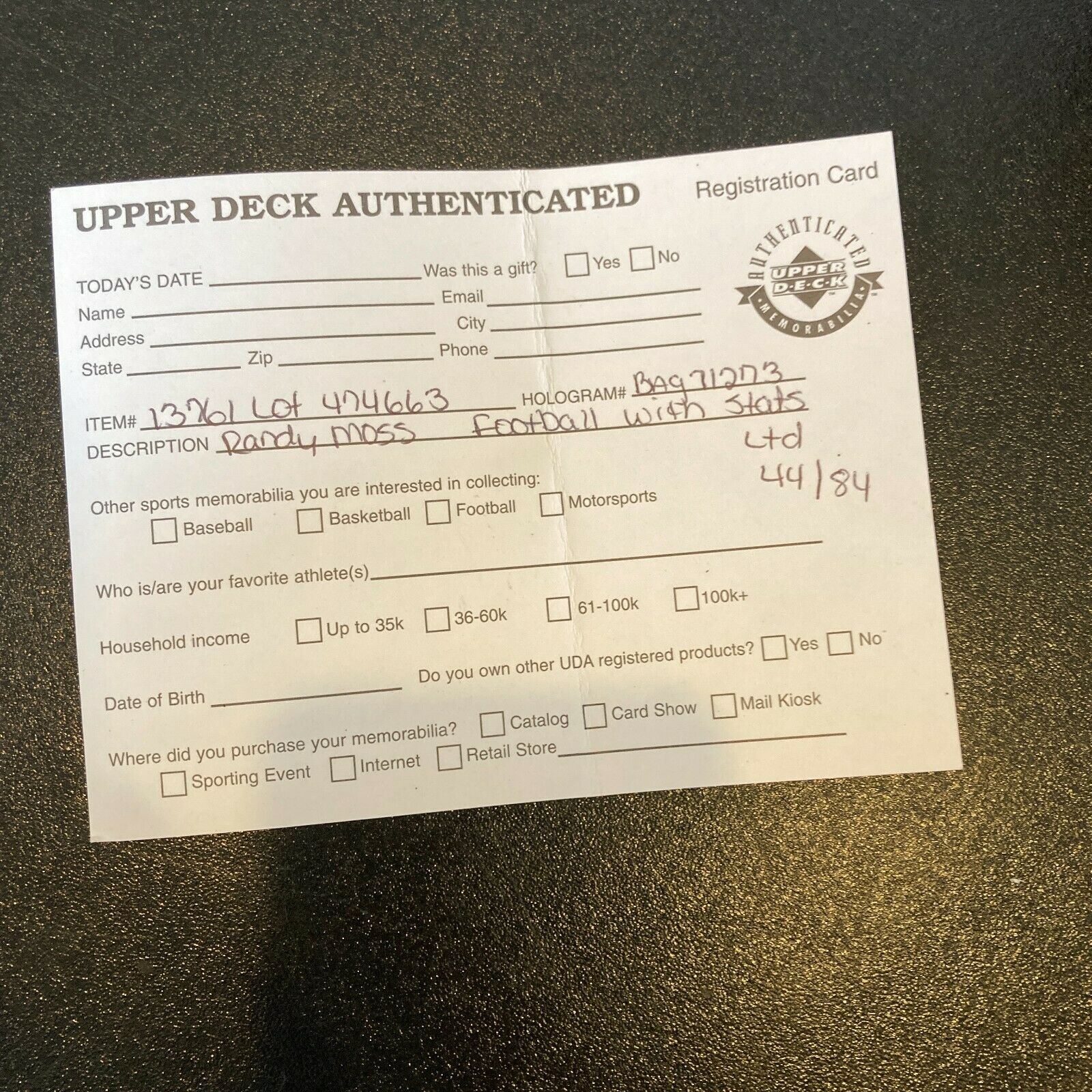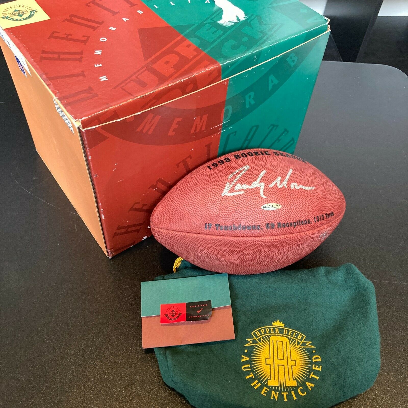 Randy Moss 1998 Rookie Signed Wilson NFL Game Football #44/84 With UDA Upper Deck COA, Box and Bag.