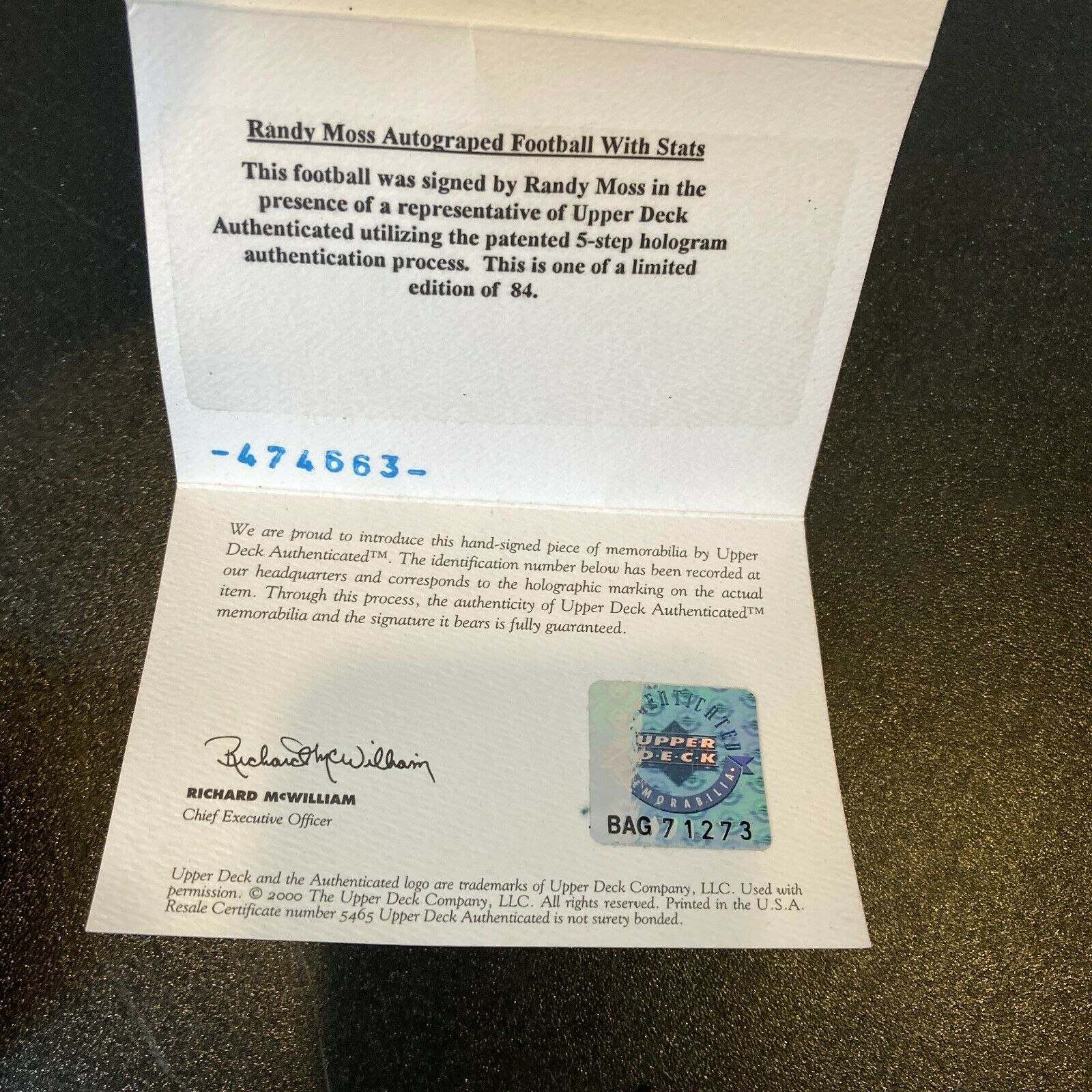 Randy Moss 1998 Rookie Signed Wilson NFL Game Football #44/84 UDA Upper Deck COA