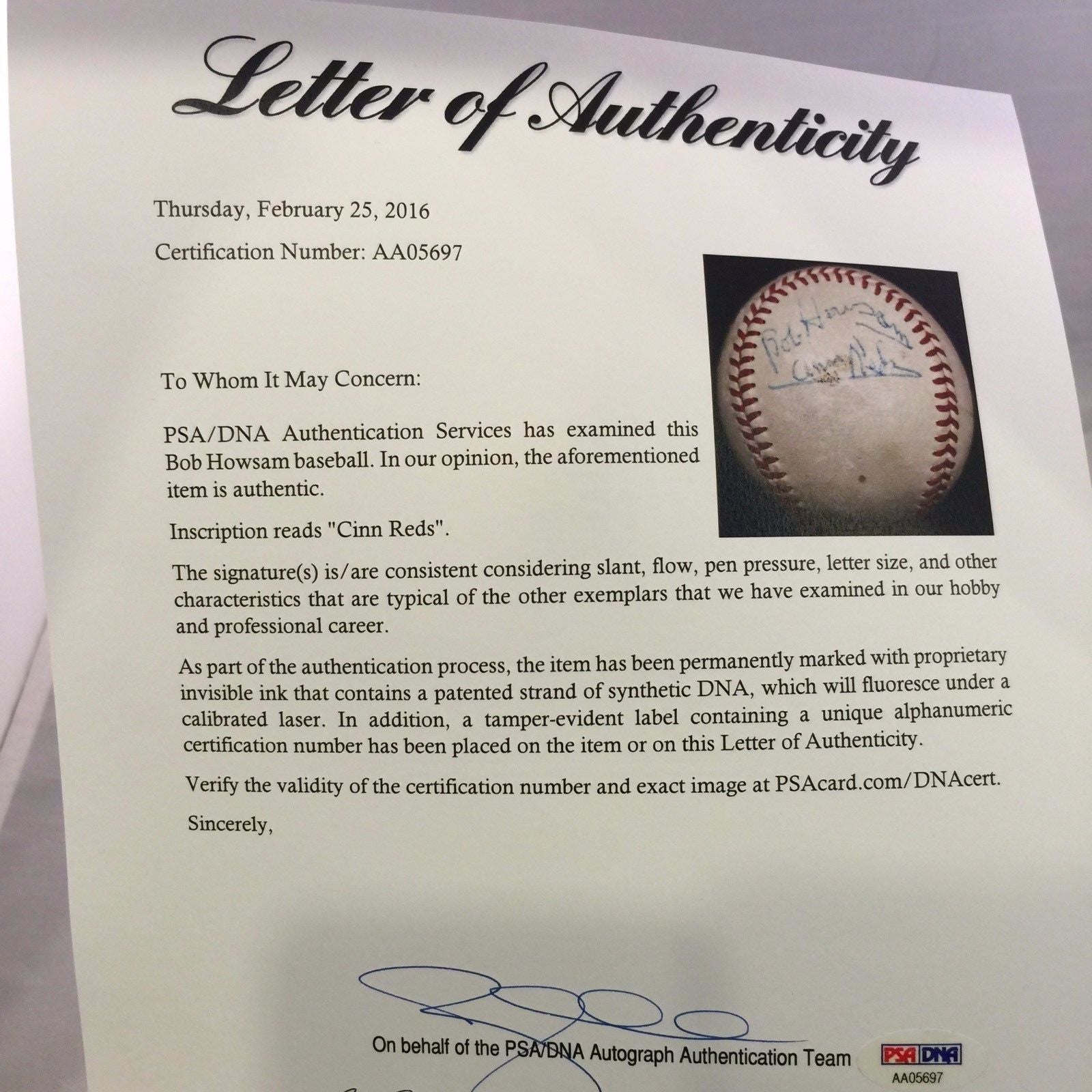 Rare Bob Howsam Single Signed Baseball Cardinals Cincinnati Reds PSA DNA COA