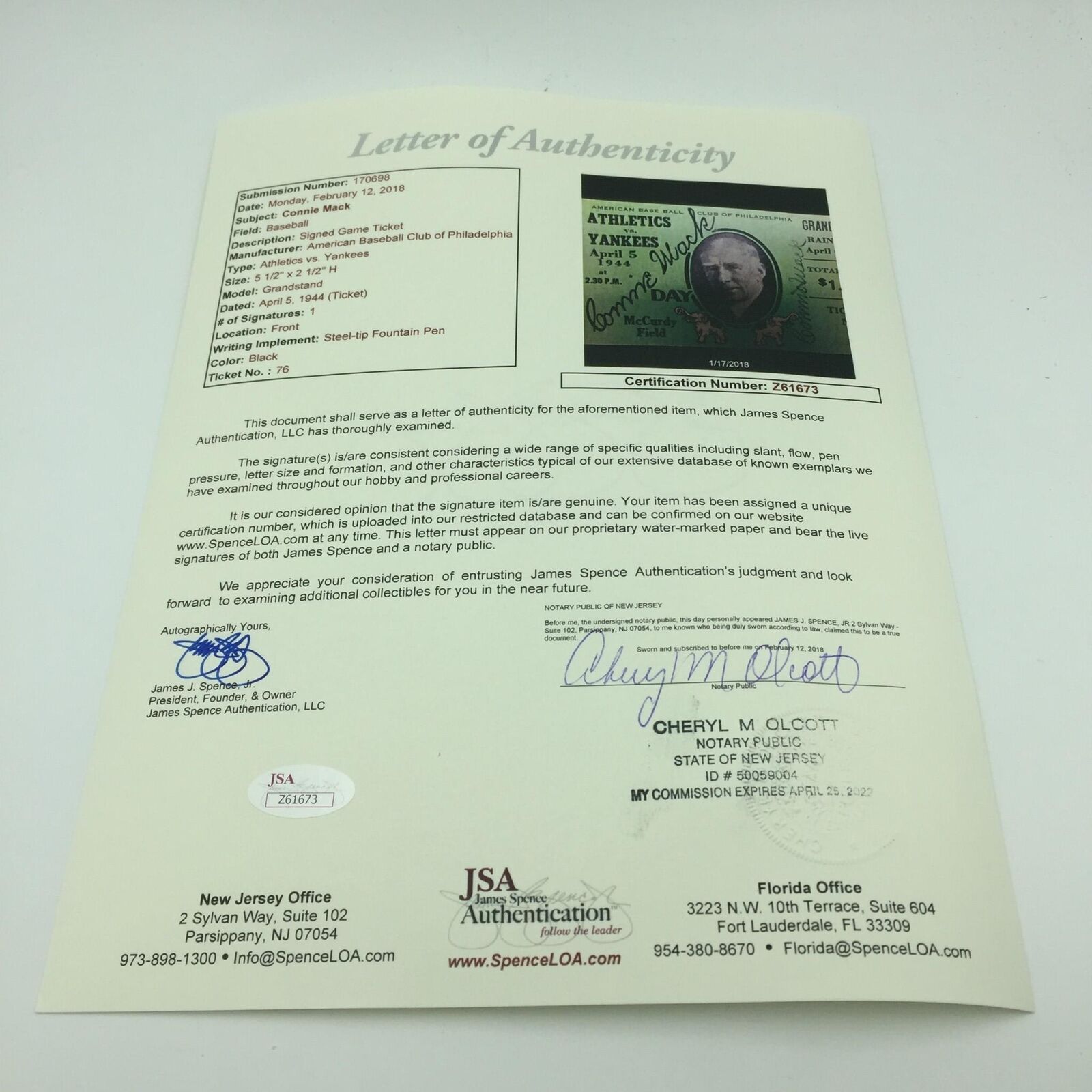 Rare Connie Mack Signed April 5, 1944 "Connie Mack Day Ticket "With JSA COA
