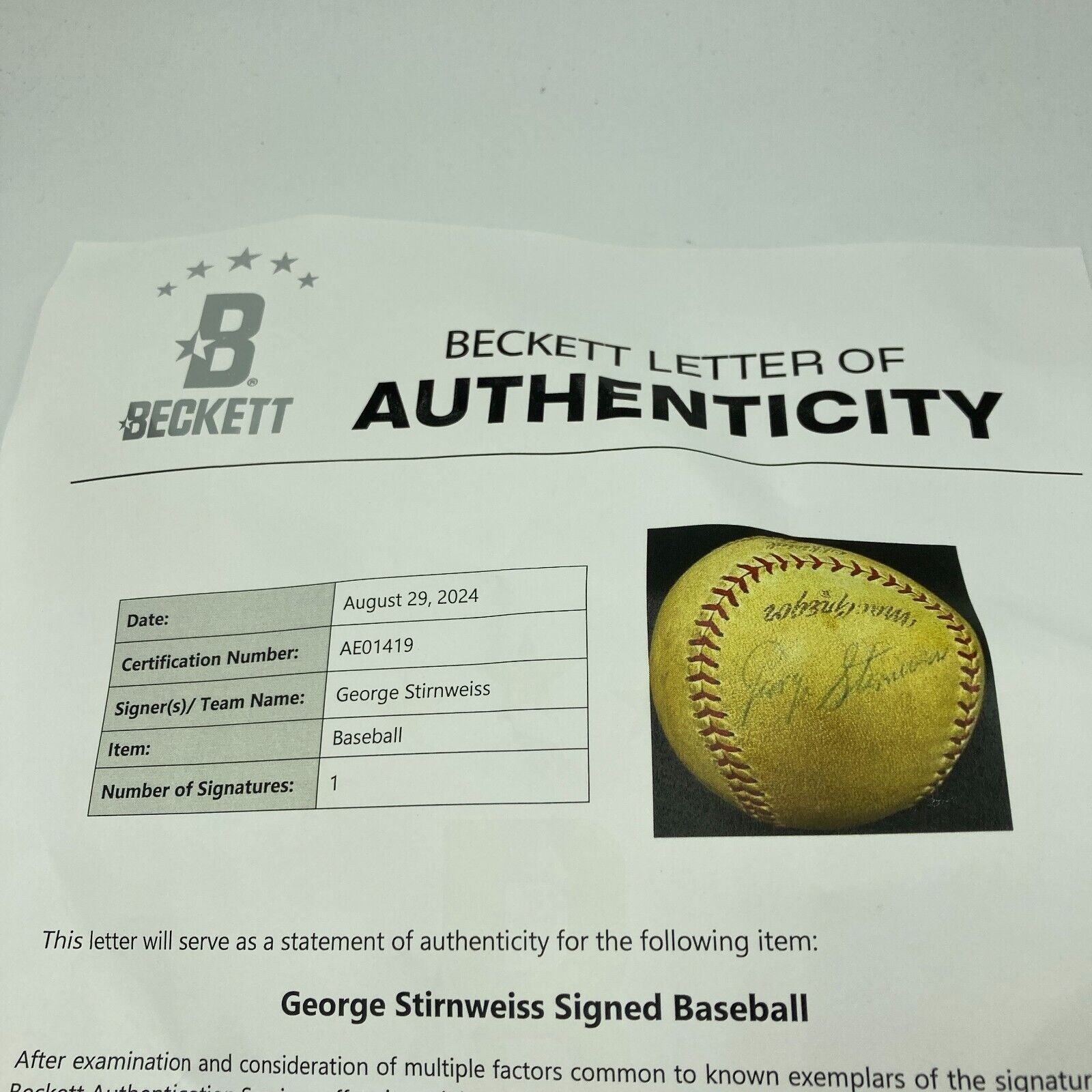 Extraordinary George Snuffy Stirnweiss Single Signed 1940's Baseball.