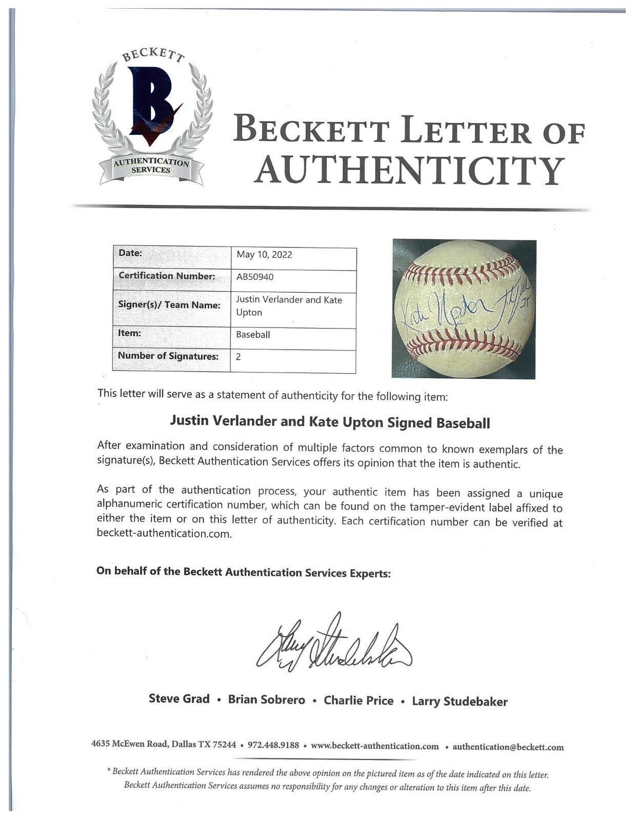 Rare Justin Verlander & Wife Kate Upton Signed Game Used Baseball Beckett COA
