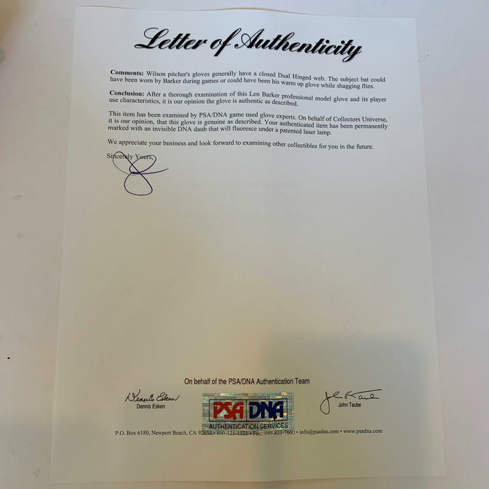 Click or scroll to zoom Tap or pinch to zoom Click or scroll to zoom Tap or pinch to zoom Click or scroll to zoom Tap or pinch to zoom Click or scroll to zoom Tap or pinch to zoom Click or scroll to zoom Tap or pinch to zoom Click or scroll to zoom Tap or pinch to zoom Click or scroll to zoom Tap or pinch to zoom Click or scroll to zoom Tap or pinch to zoom Rare Len Barker 1979 Signed Game Used Baseball Glove With PSA DNA COA $1,195.00 1 2 3 4 5 6 7 8 9 10+ Quantity Quantity Add to cart This item is a recurring or deferred purchase. By continuing, I agree to the cancellation policy and authorize you to charge my payment method at the prices, frequency and dates listed on this page until my order is fulfilled or I cancel, if permitted. Rare Len Barker 1979 Signed Game Used Baseball Glove. Comes with full letter COA from PSA DNA and another COA from PSA DNA for the autograph. #9295837 D#2
