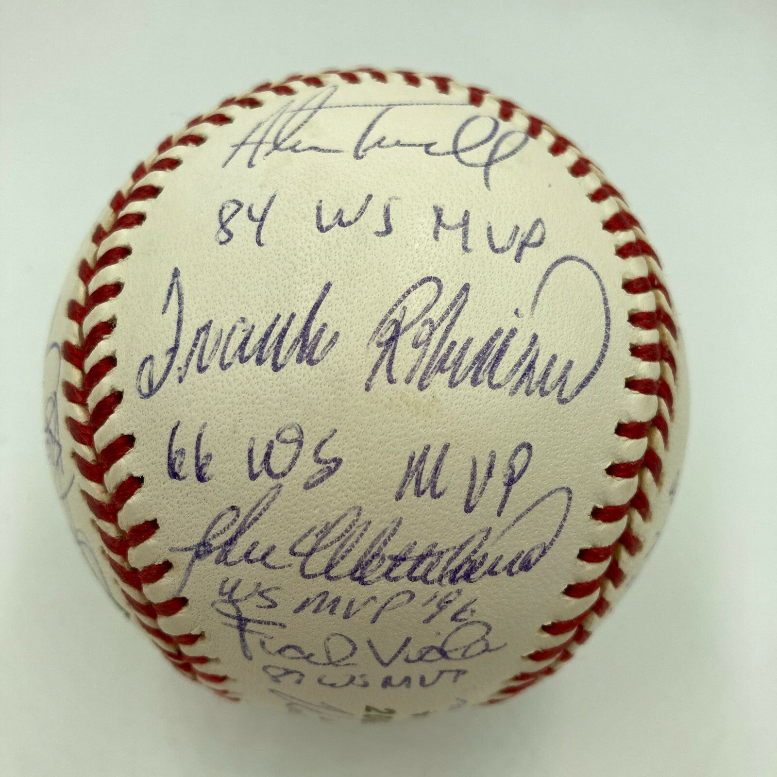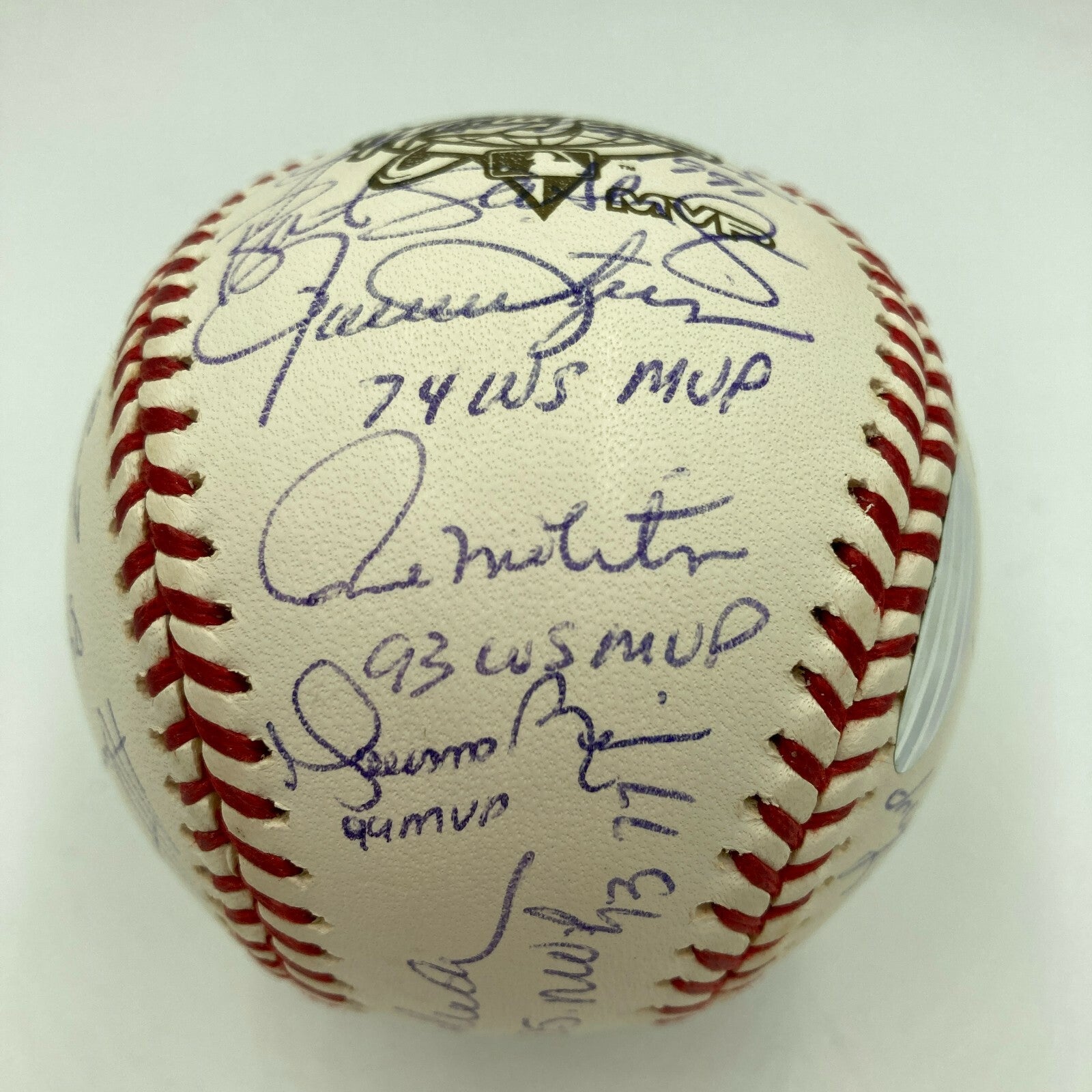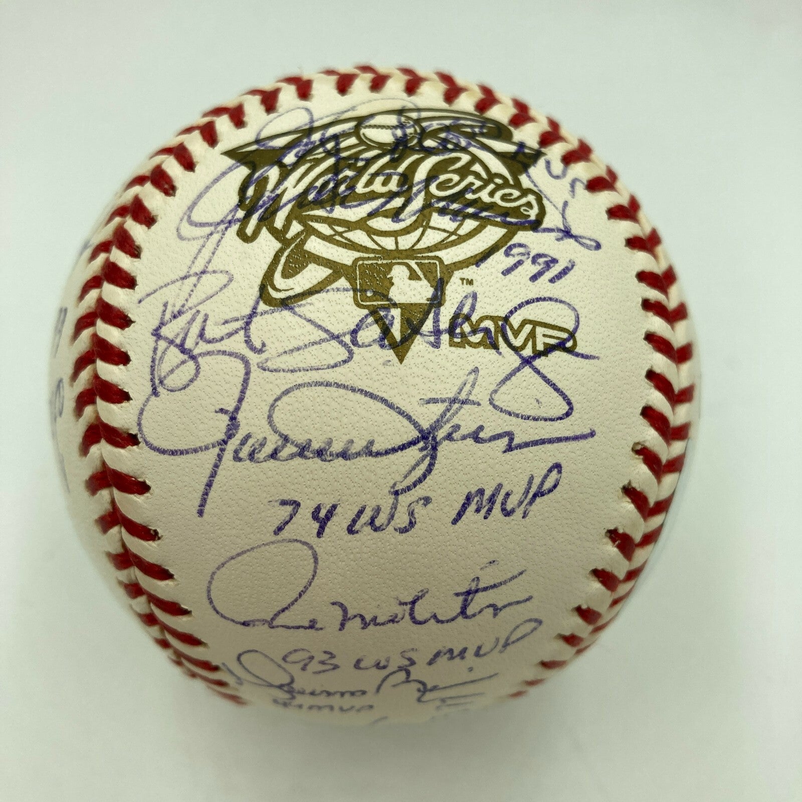 This Official 2000 World Series baseball has been personally hand signed by Pete Rose, Orel Hershiser, Darrell Porter, Johnny Podres, Donn Clendenon, Larry Sherry, Tom Glavine, Bob Gibson, Steve Yeager, Ron Cey, Ray Knight, Pedro Guerrero, Jose Rijo, Dusty Rhodes, Johnny Bench and Mike Schmidt.