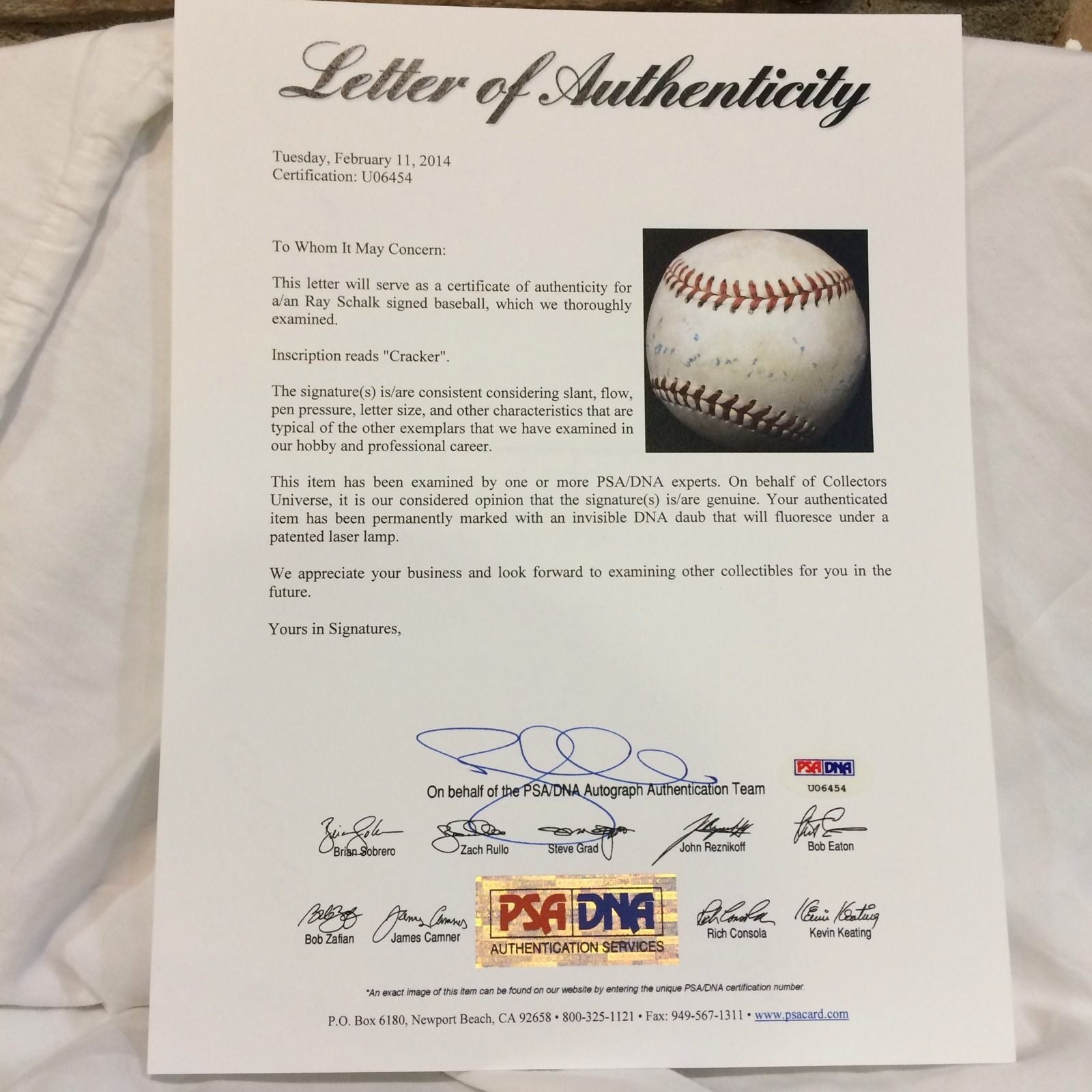 Ray Schalk Single Signed American League Harridge Baseball PSA DNA COA HOF