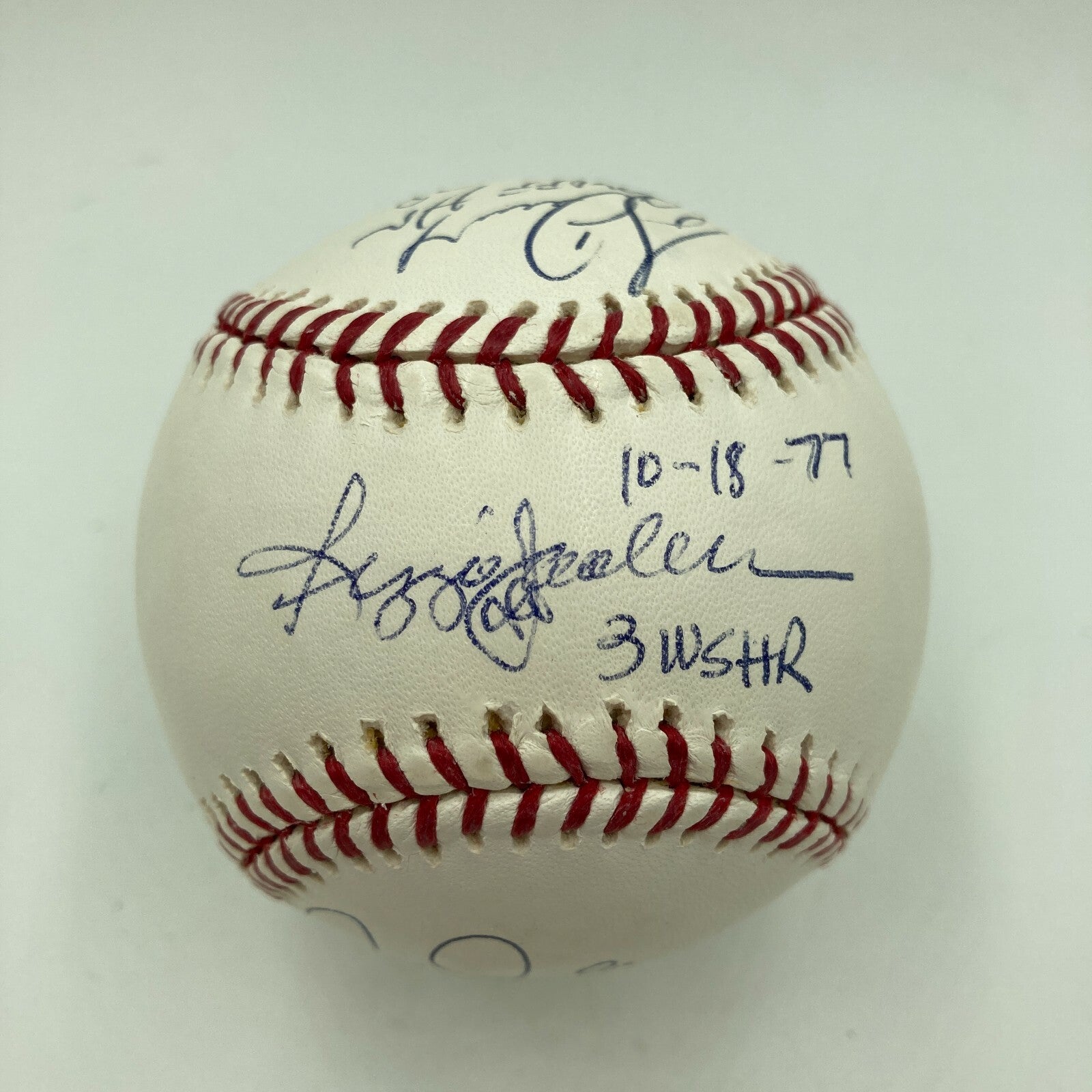 Reggie Jackson Aaron Boone Bucky Dent Yankees Legendary Moments Signed Baseball