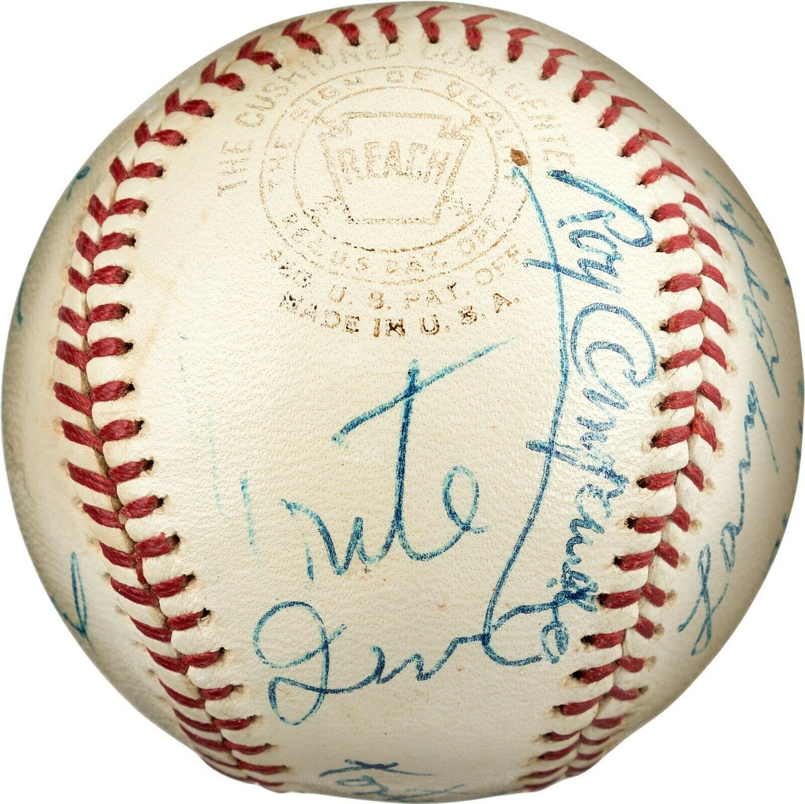 The most prominent of the thirteen autographs is that of RFK on a side panel. Bobby served as brother John's attorney general and then New York senator before being assassinated while battling for the 1968 Democratic presidential nomination. Other signees are also giants and include baseball Hall of Famers Roy Campanella, Casey Stengel, Zack Wheat, Ford Frick, Joe Cronin, Monte Irvin, Larry Doby, and Mel Allen, along with Elston Howard, Tracy Stallard, Toots Shore (sweet spot), and James A. Farley. Farley was a member of FDR's cabinet, a noted "political kingmaker," and was responsible for Coca-Cola's global expansion during his thirty-three years at the company's helm.