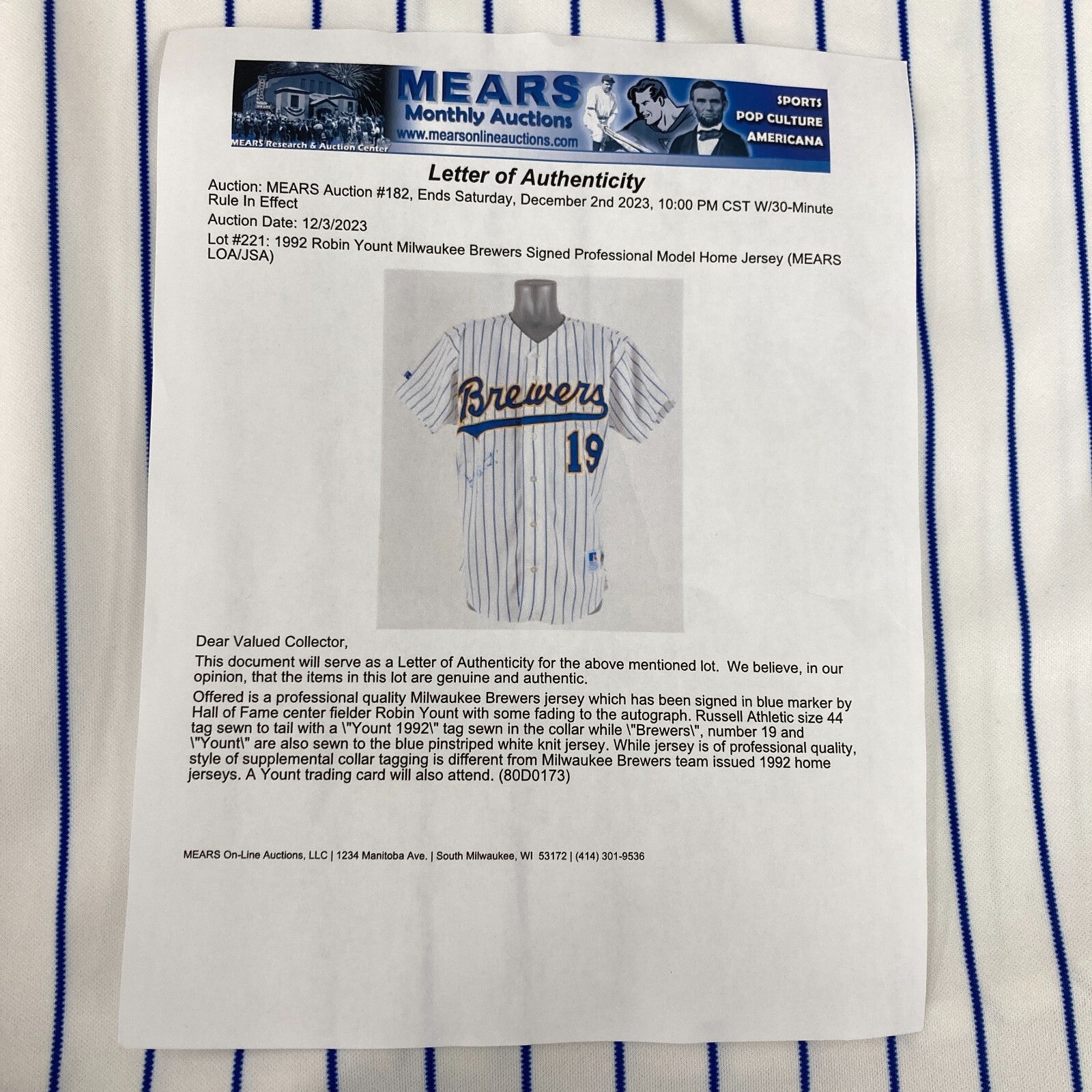 Robin Yount Signed 1992 Game Issued Milwaukee Brewers Jersey PSA DNA & MEARS COA