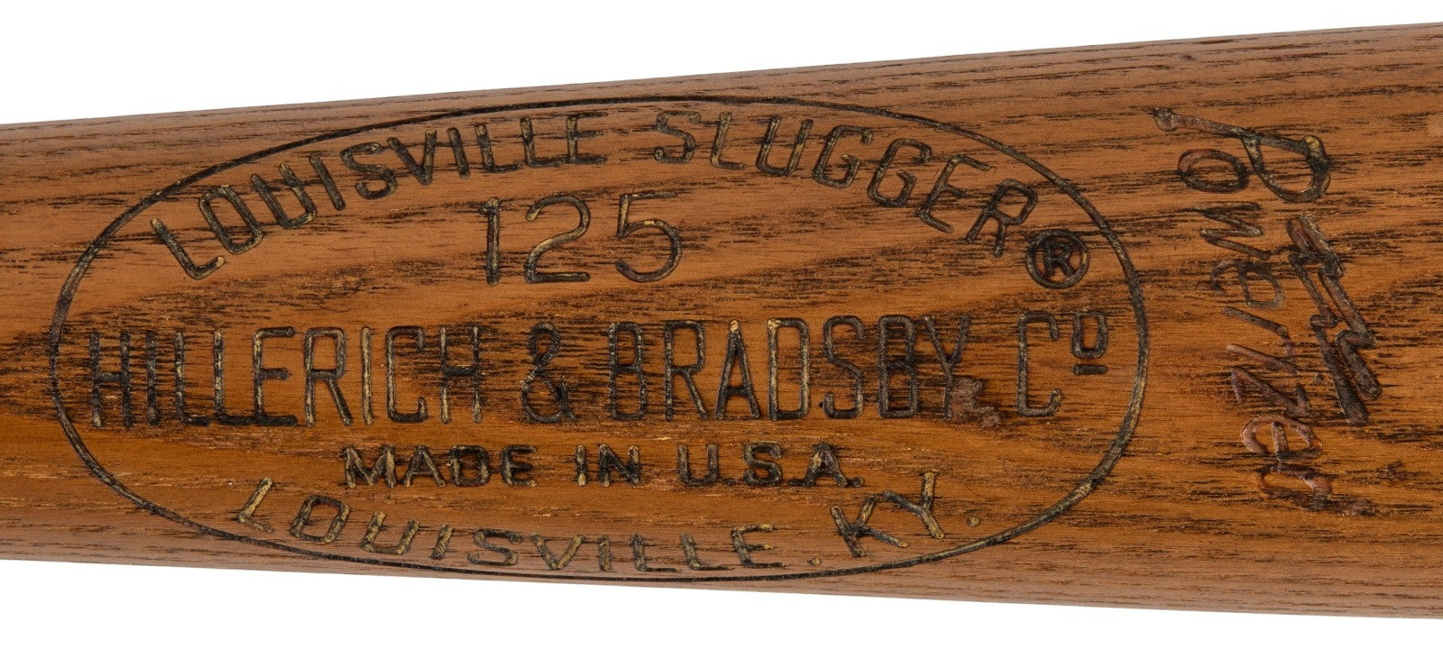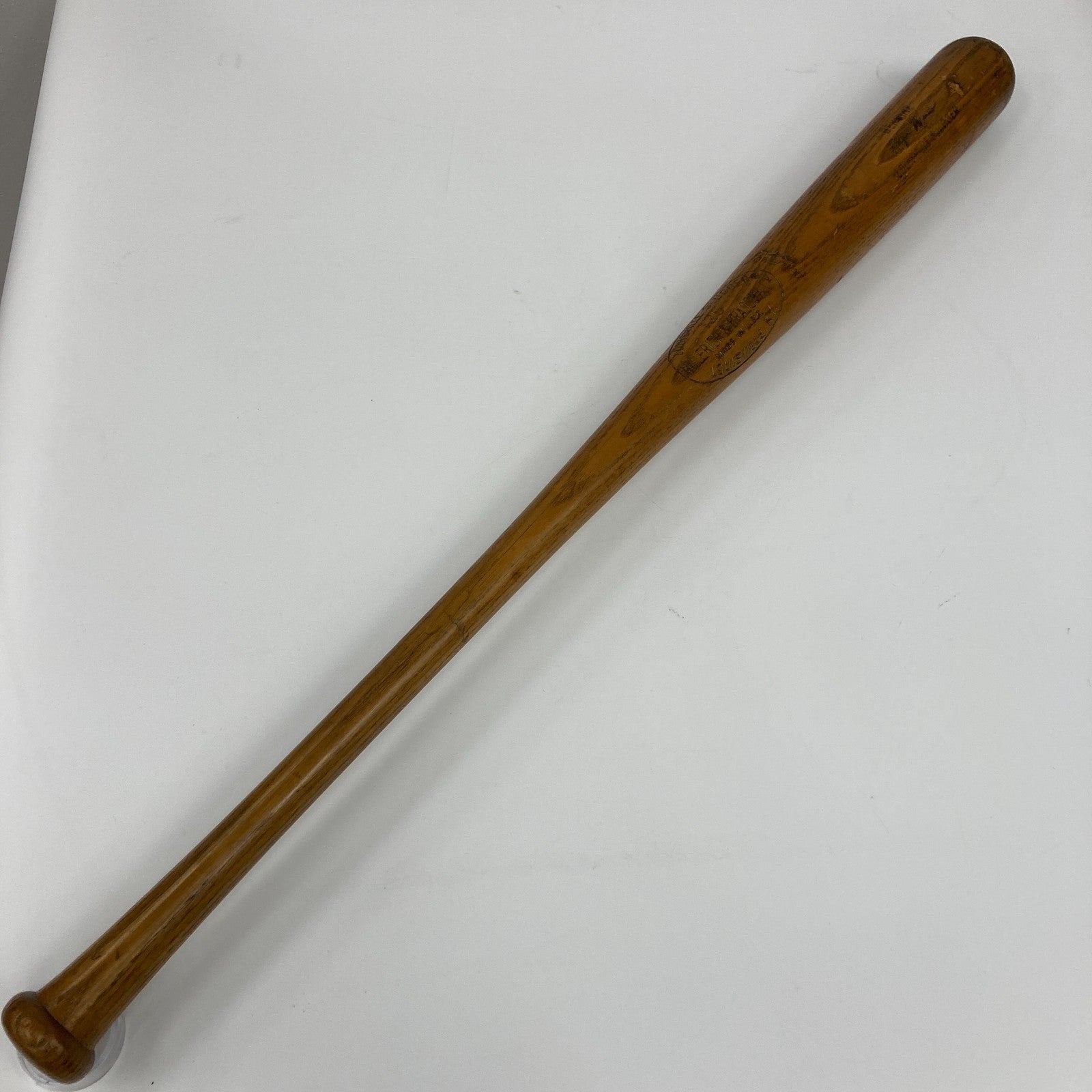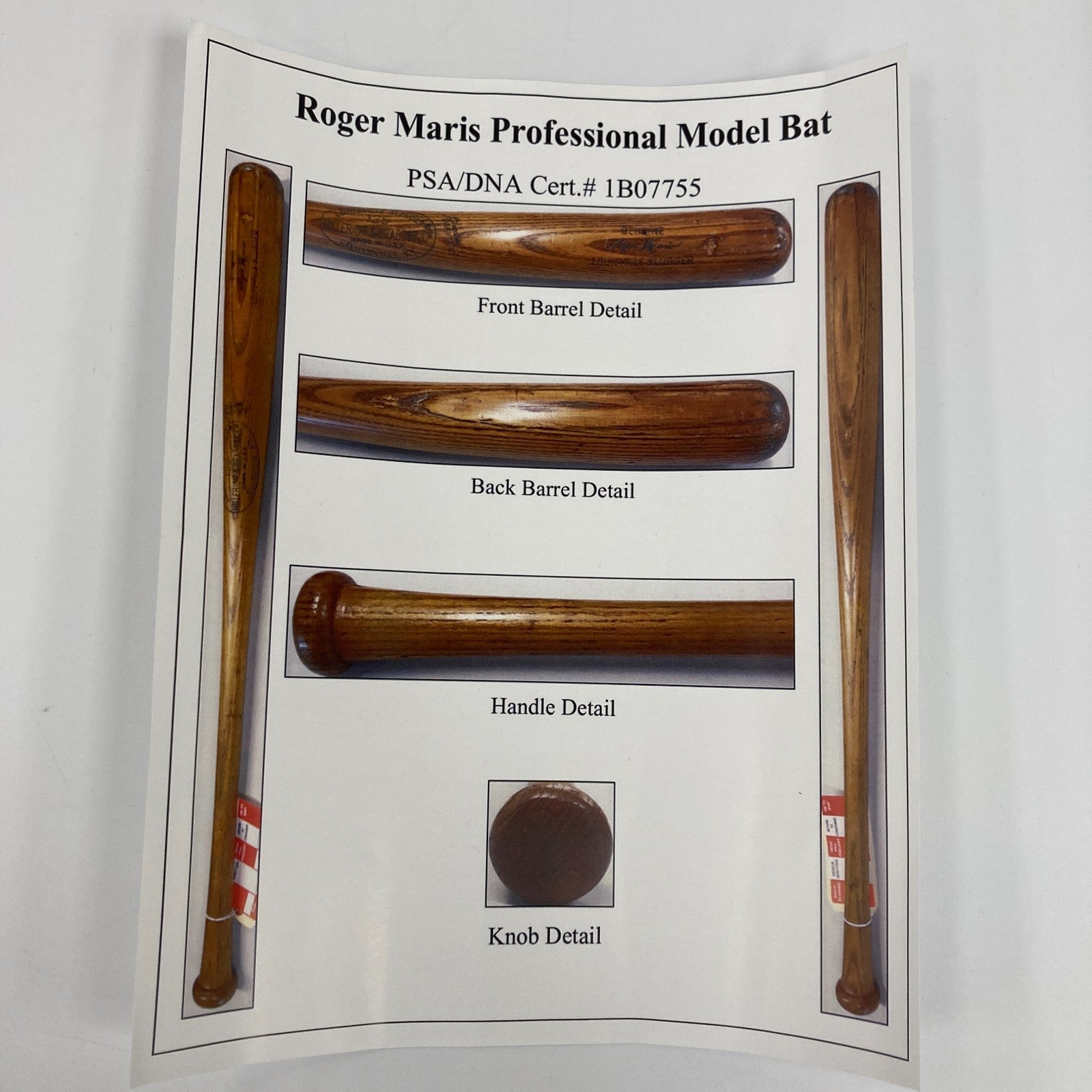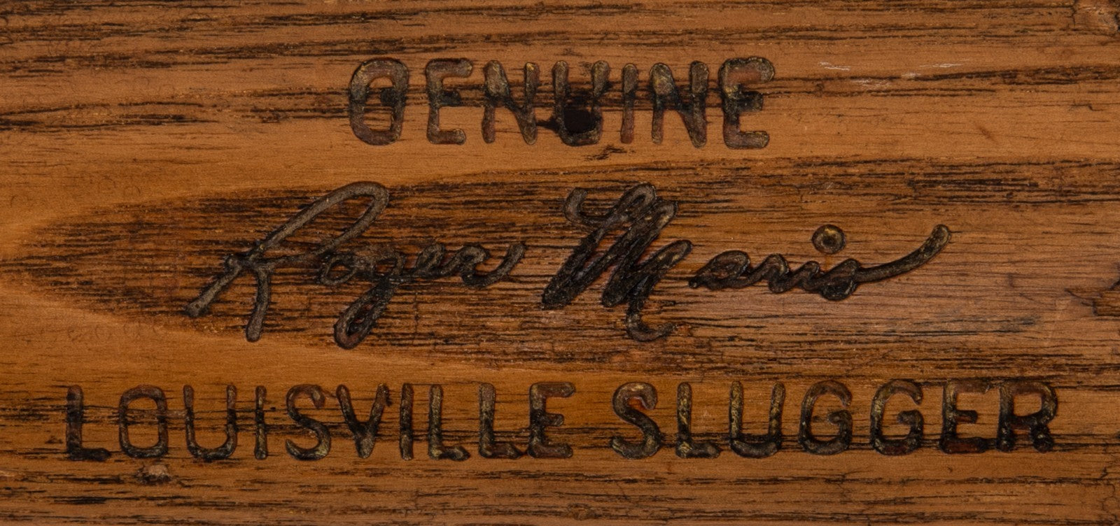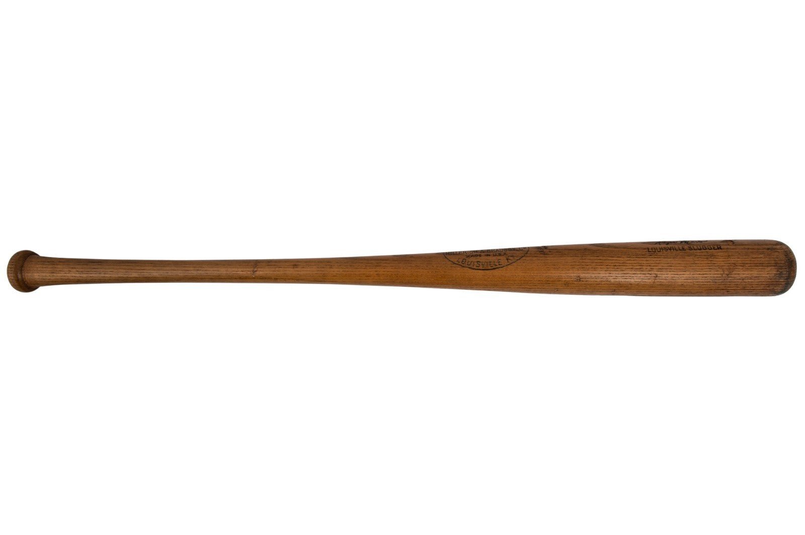 Presented is a game-used Louisville Slugger Hillerich & Bradsby O16 professional model baseball bat used by former single-season American League home run king Roger Maris during the 1967 MLB season. The 1967 campaign was Maris' first with the St. Louis Cardinals after a torrid seven-year tenure in the Bronx that saw him win two AL MVP Awards and club 203 home runs, including a then-record 61 long-balls in 1961. In 1967, Maris hit .261 with nine homers and 55 RBIs while recording a .751 OPS. His Cardinals were dominant, finishing the regular season with 101 wins before besting the Red Sox in a seven-game classic in the World Series. Although Maris had a relatively quiet regular season, he was wonderful in the Fall Classic, batting .385 (second only to Lou Brock for the Red Birds) with seven RBI; this was the best batting average he had posted in any of his seven World Series. The offered ash bat weighs 33.4 ounces and measures 35.0 inches. According to the piece's accompanying PSA/DNA LOA (1B07755), the item exhibits evidence of "moderate use" with a handle crack, grain swelling on the back barrel, and ball marks, stitch impressions, and cleat impressions on the barrel. A light coat of pine tar is visible on the handle. The model number, length, and weight specifications have been confirmed by the manufacturer’s ordering records as being requisitioned by Maris sometime in 1967, the year Maris' Cardinals beat Boston in the World Series. The PSA/DNA LOA concludes that the bat was used by Maris during the referenced labeling period (1967).