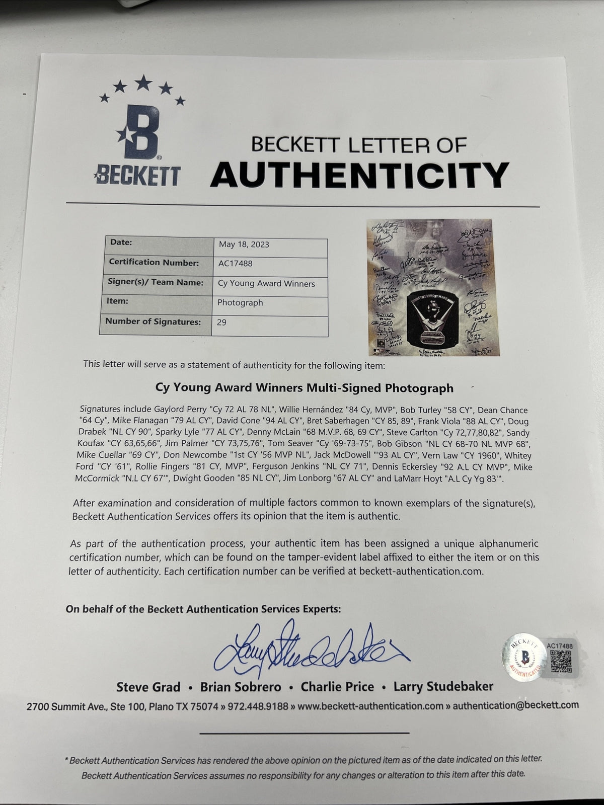 Sandy Koufax Cy Young Winners Signed 16x20 Photo 29 Signatures Beckett COA