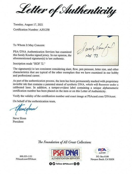 Sandy Koufax Hall Of Fame 1972 Signed Authentic Brooklyn Dodgers Jersey PSA DNA