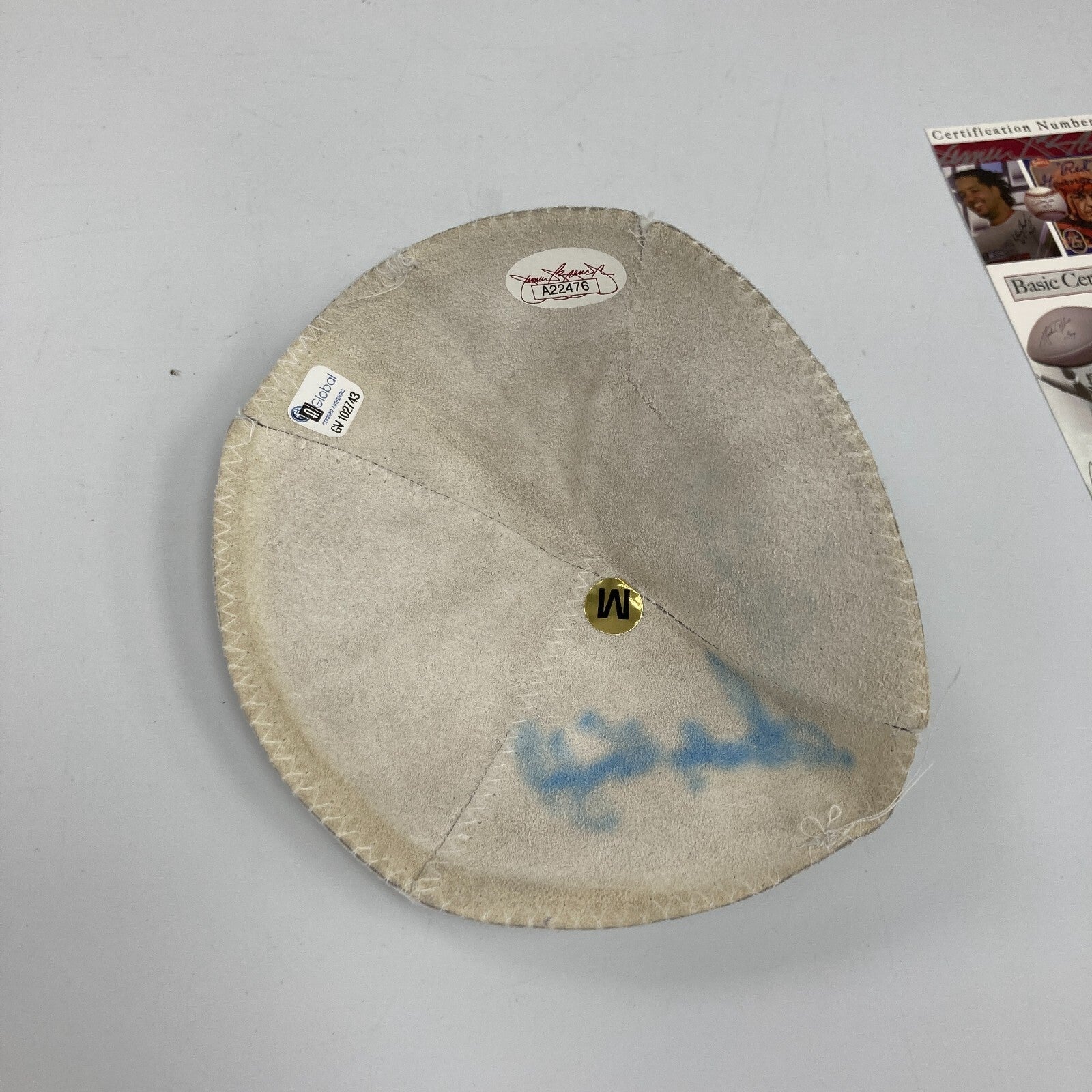 Sandy Koufax autographed white yarmulke in blue marker/pen. Signed in 1995 and believed to be from a group of only 30 signed by the Hall of Fame pitcher. An extremely scarce item, rarely seen coming up for sale. It comes with a JSA basic certificate of authenticity from JSA.