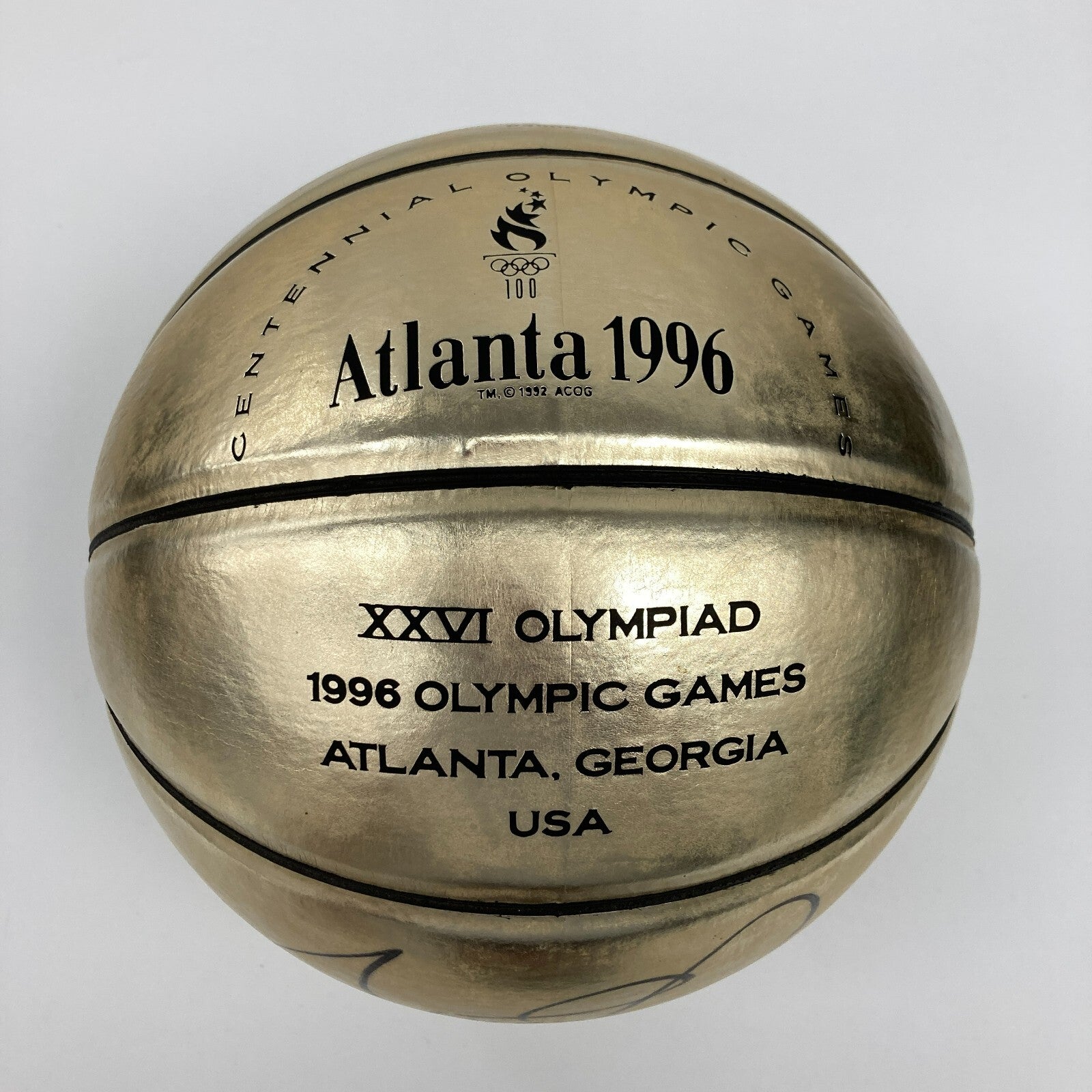 1996 Scottie Pippen Signed Olympics Basketball, UDA. Scottie Pippen was a two-time member of the Dream Team. Offered is a golden basketball made to commemorate the 1996 Olympics. The ball is signed in solid black Sharpie by Pippen. COA from UDA # BAF18931.