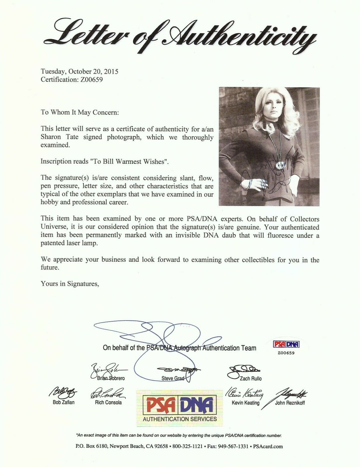 Sharon Tate Signed Autographed 8x10 Photo Manson Family Murder With PSA DNA COA