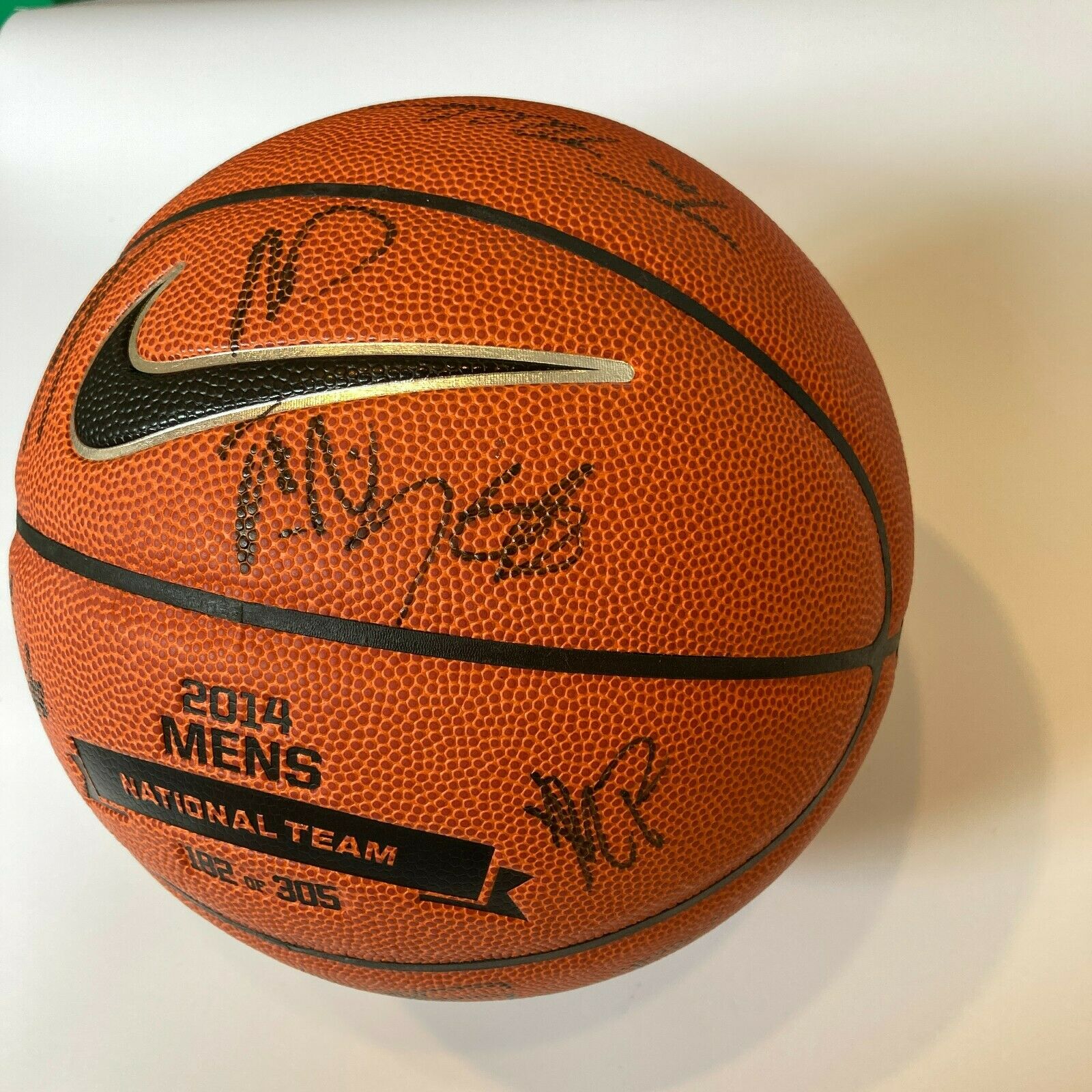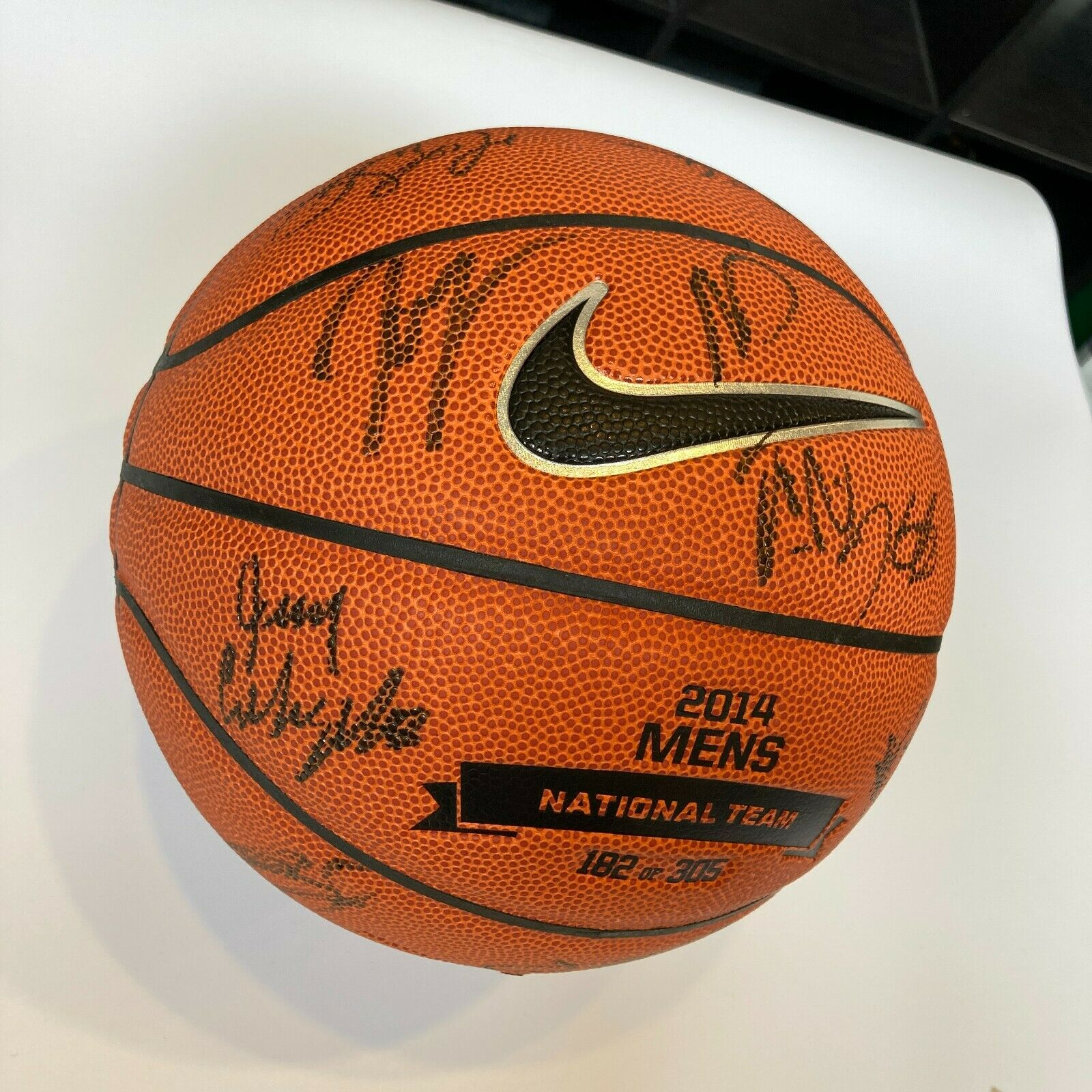 Presented is a 2014 USA National team white panel basketball signed by the team. There are (21) signatures in black felt tip with notables including Stephen Curry, Mike Krzyzewski, Jim Boeheim, Anthony Davis, Bradley Beal, Paul George, Kyrie Irving, Klay Thompson, Kevin Durant, John Wall, Tom Thibodeau, Monty Williams and Damian Lillard.