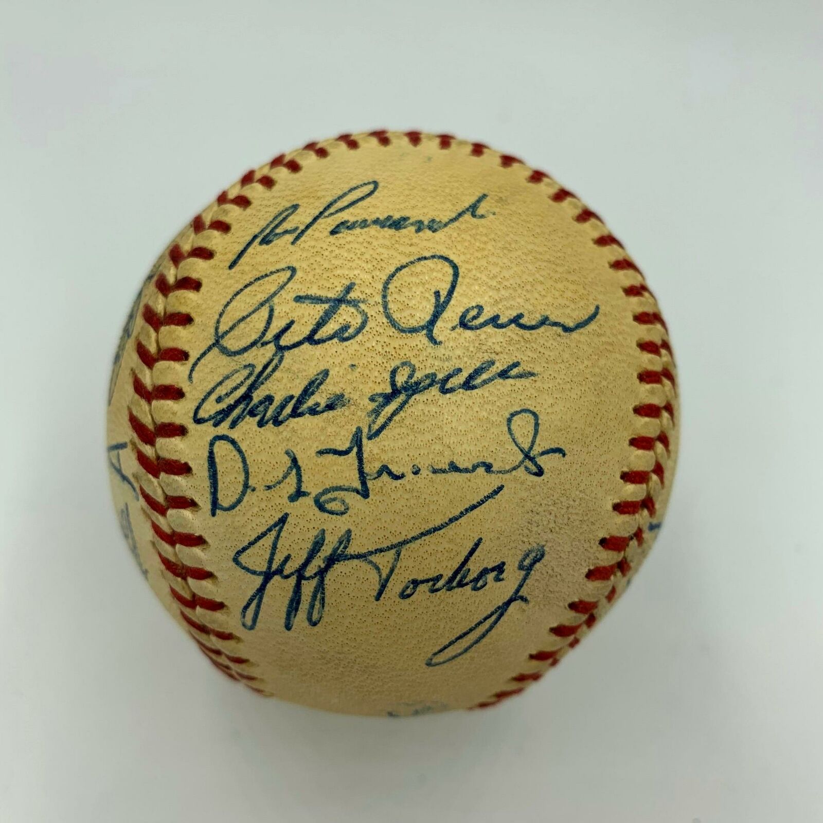 This has 24 very bold and strong blue ballpoint ink signatures. Keys include Sandy Koufax, Walt Alston, Moon, Reiser,Perranoski and many more. Full letter JSA COA.#389177