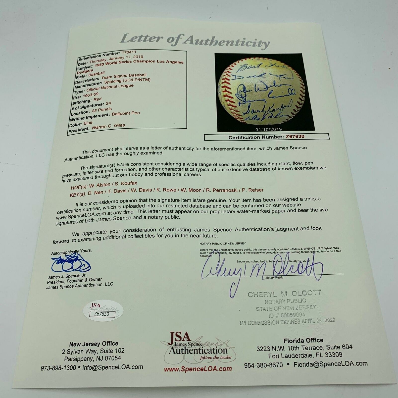 Stunning 1963 Los Angeles Dodgers World Series Champs Team Signed Baseball JSA