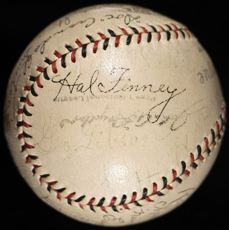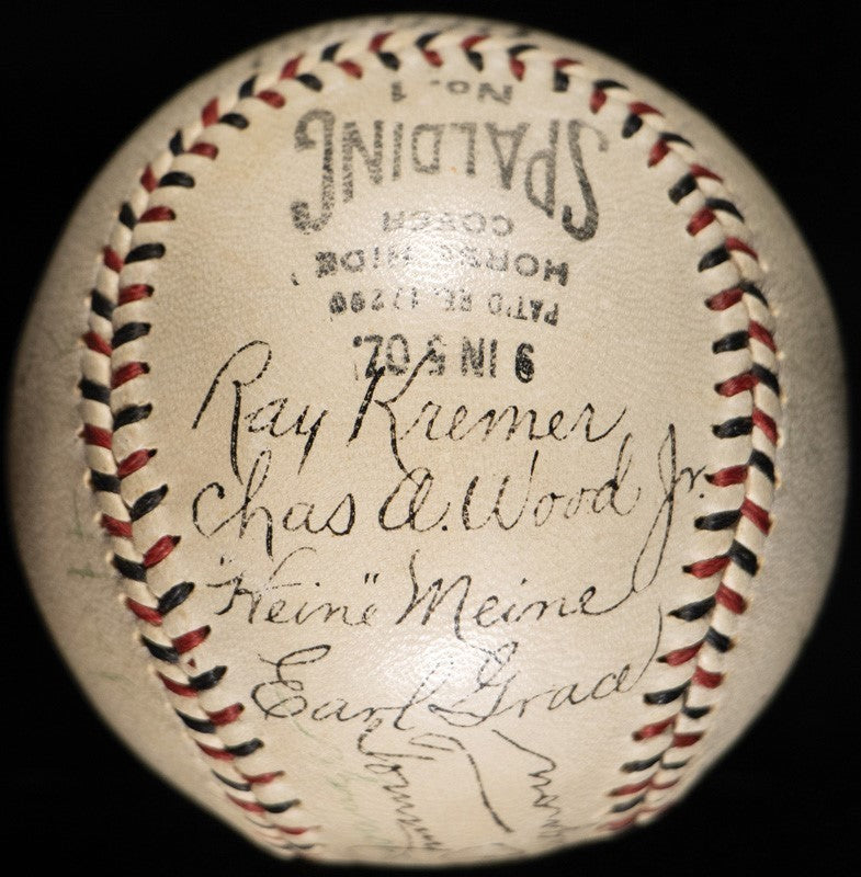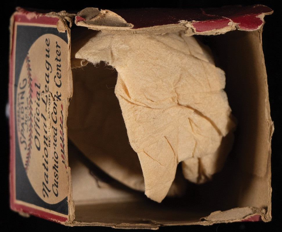 Presented is a remarkable relic from the early Depression-era diamond—an exceptionally well-preserved 1933 Pittsburgh Pirates team-signed baseball, accompanied by its original Spalding box. The ball bears the autographs of several notable Pirates from the period, headlined by Baseball Hall of Famer Honus Wagner, who was serving as a long-time coach during the 1933 season, and Waite Hoyt, another Cooperstown inductee and key arm on the club’s pitching staff. Additional signatures include Ralph Birkofer, Doc Crandall, and other team members from the 1933 squad, each executed in period fountain pen across the surface of the baseball. The autographs remain distinctly legible, displaying strong vintage presentation consistent with careful storage inside its original Spalding Reach box, which accompanies the piece—a rare and desirable pairing seldom seen from this era. Comes with full letter Beckett COA.