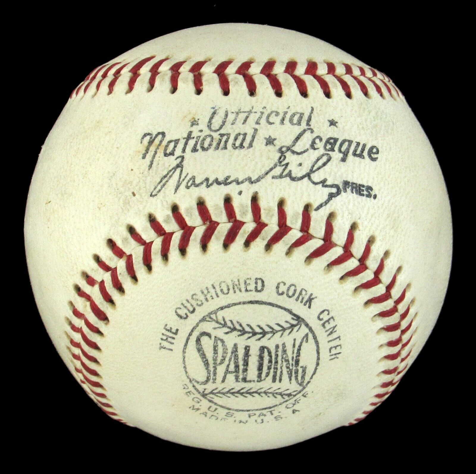 The political winds made a dynamic shift in direction toward the liberal side in the 1960s, when Earl Warren sat as Chief Justice of the Supreme Court. A lifelong politician, Warren authored numerous landmark opinions during his tenure at the top of the government's judicial branch, and he's also remembered for heading up the Warren Commission, which investigated the assassination of John F. Kennedy. Evidently Warren was also a good sport in providing autographs, and a pleasing example awaits your decision with this period signed 1963-1969 Official National League Giles baseball. Warren (d.1974) has signed on the desired sweet spot location. Full photo LOA from JSA.