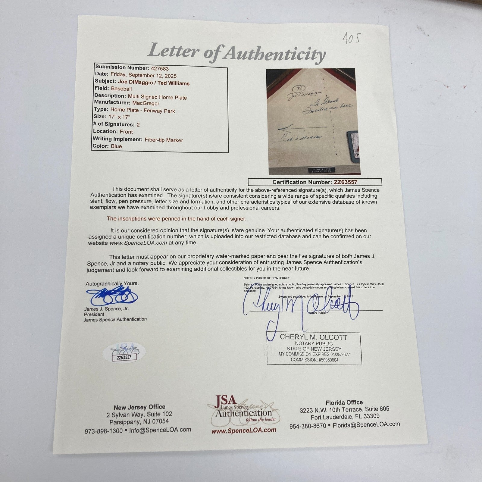 Ted Williams & Joe Dimaggio 56 Hits Signed Inscribed Home Plate JSA COA RARE