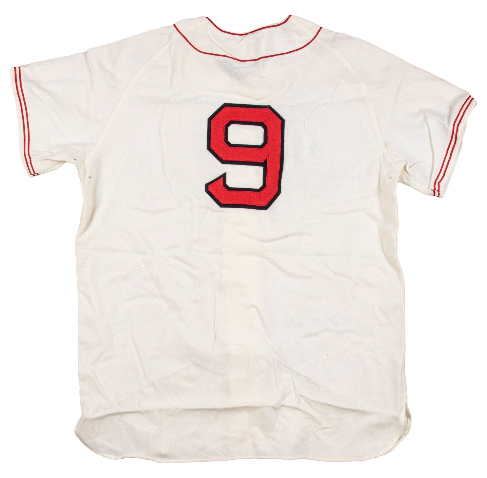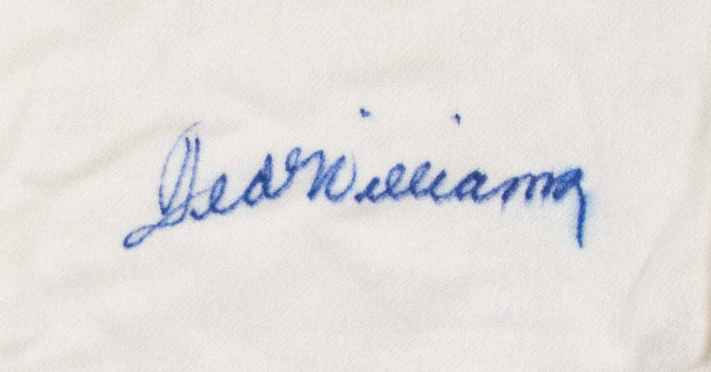 Offered here is a signed Mitchell and Ness Cooperstown Collection 1941 Boston Red Sox jersey signed by Hall of Famer and baseball legend Ted Williams. This replica home white jersey button down jersey is cream with "RED SOX" sewn on in red and navy felt with red piping along the jersey's collars and sleeves. A white patch is on the front-right tail that has embroidered "Ted Williams THE SPLENDID SPLINTER 50TH ANNIVERSARY .406 IN 1941 158 of 406." A Major League Cooperstown Mitchell and Ness manufacturing tag is located on the jersey's left front tail. A Mitchell and Ness manufacturing tag appears on the inside collar with a retail tag attached and a "MADE IN THE USA" flag. The number "9" is on the back in red and navy felt. Williams signed the jersey lower-right front in blue marker. This comes with a LOA from Beckett Authentication.