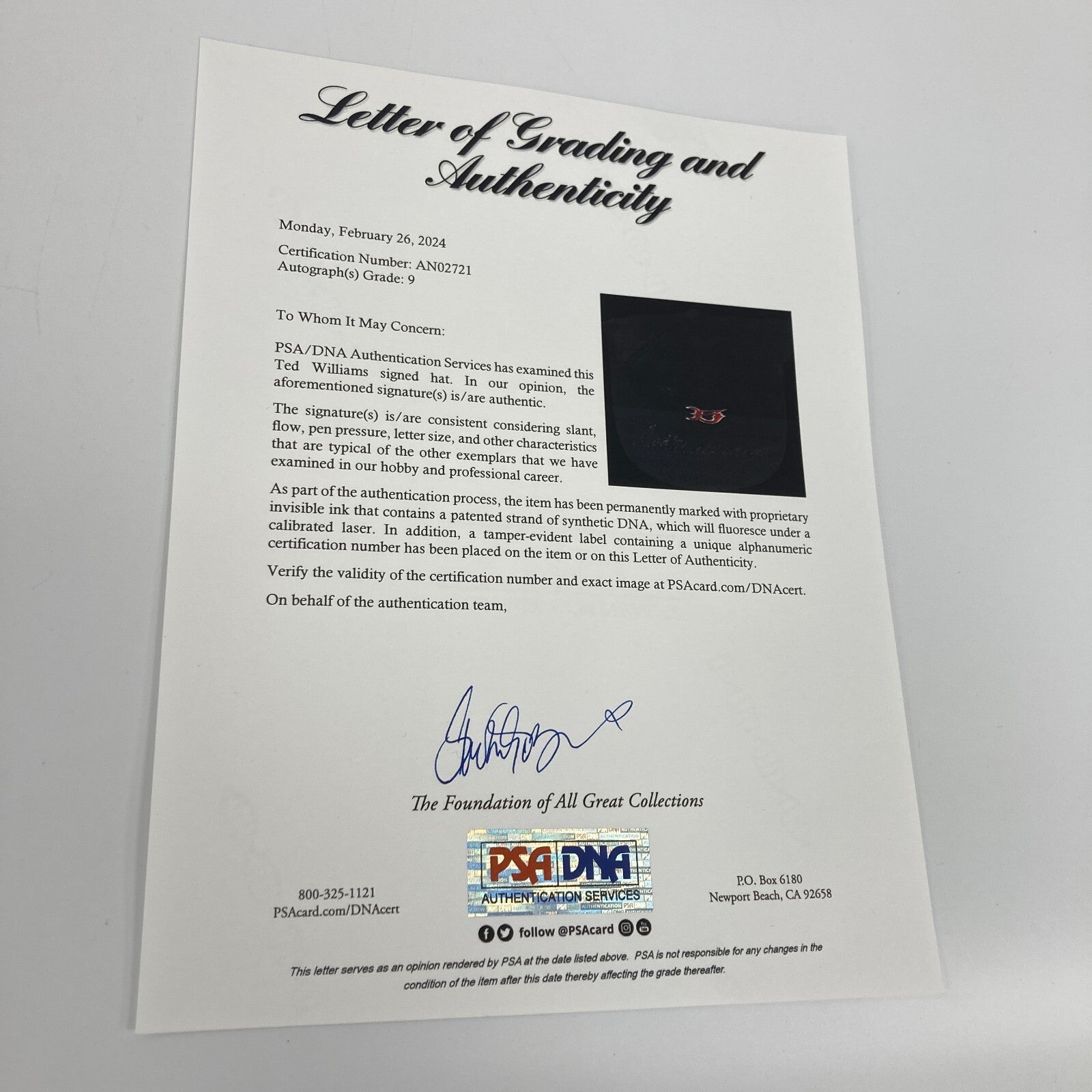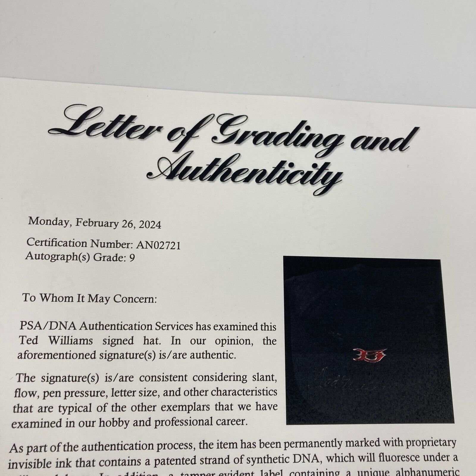 Ted Williams Signed Boston Red Sox Hat PSA DNA Graded 9 MINT.