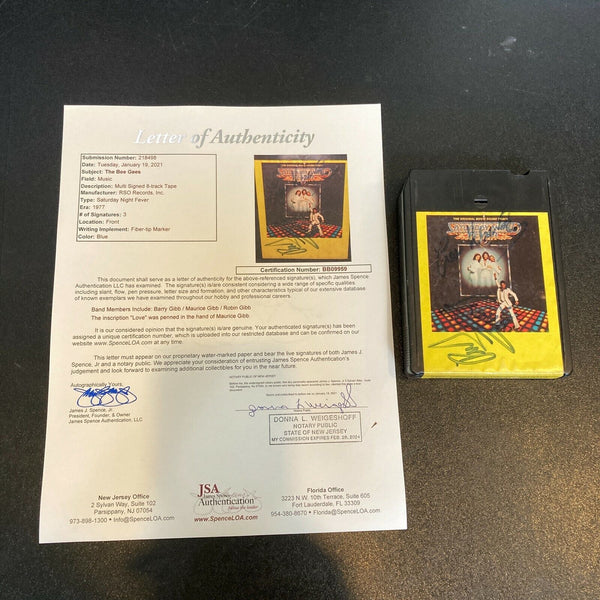 The Bee Gees Band Signed 1977 8-track Tape Barry, Maurice & Robbin Gibb JSA COA