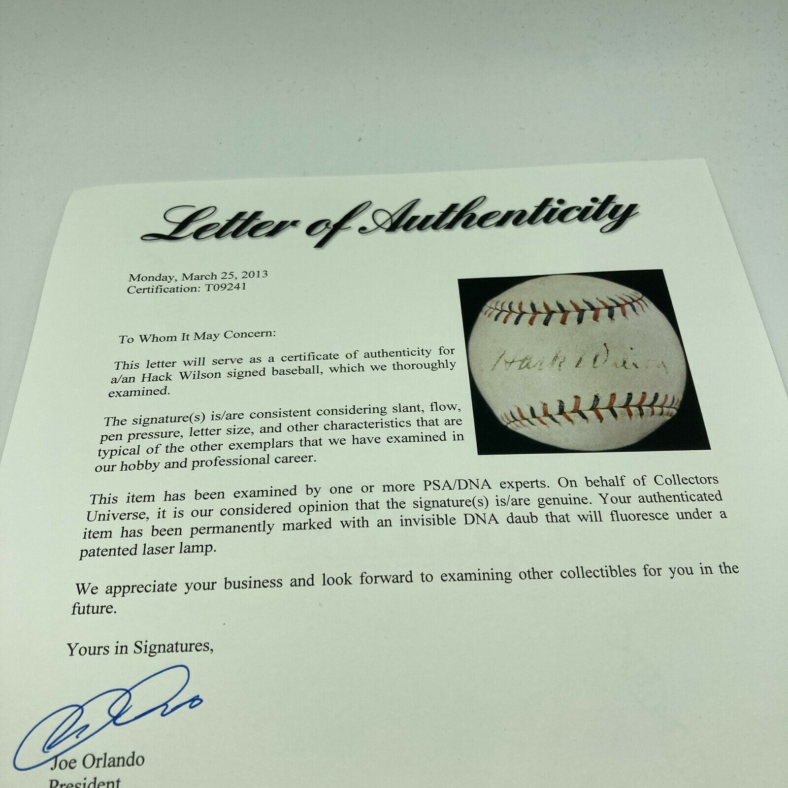 The Finest Hack Wilson Single Signed 1930 National League Baseball PSA DNA COA
