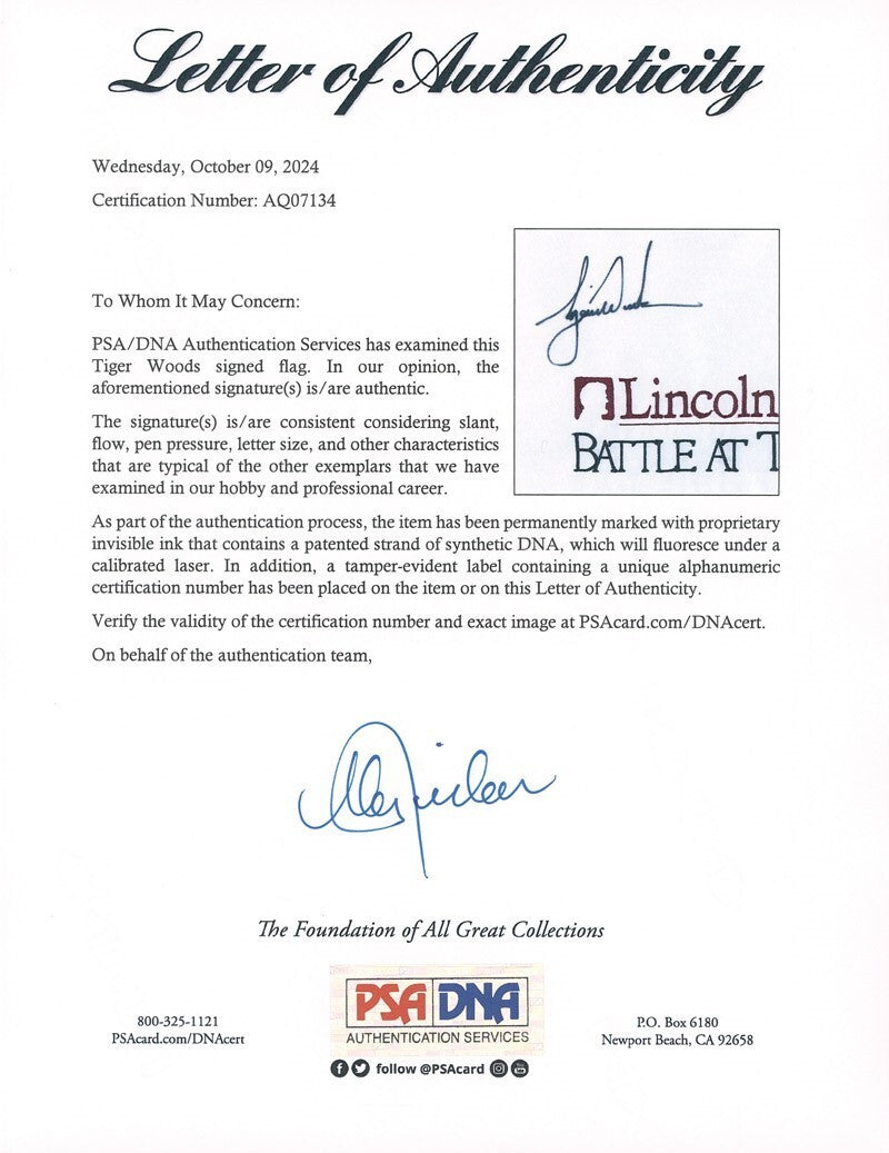 Tiger Woods Signed Autographed PGA Golf Flag PSA DNA COA