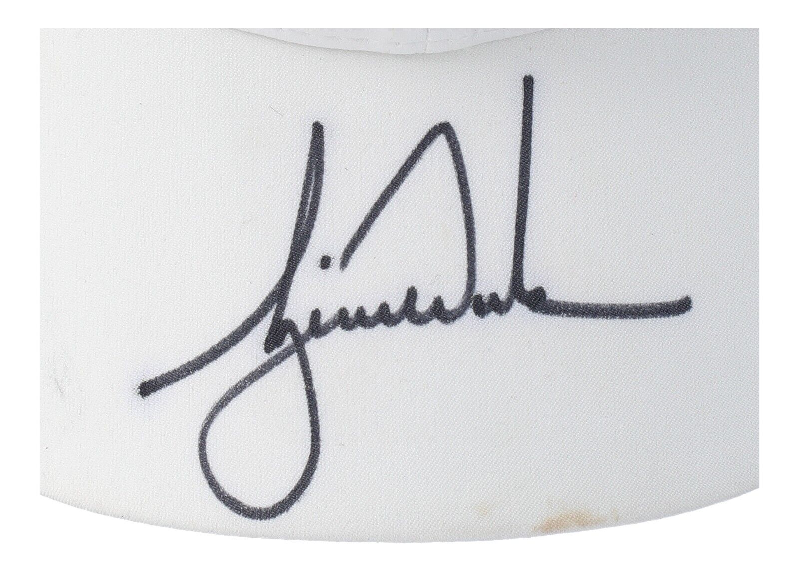 Relatively early in Tiger’s 27-year Nike partnership (which put the Jordan-identified brand on the map in golf), fans and consumers were introduced to the “Tiger Woods Collection.” This “TW” logo cap features his elegant black-marker. Light overall wear. Comes with Beckett LOA.