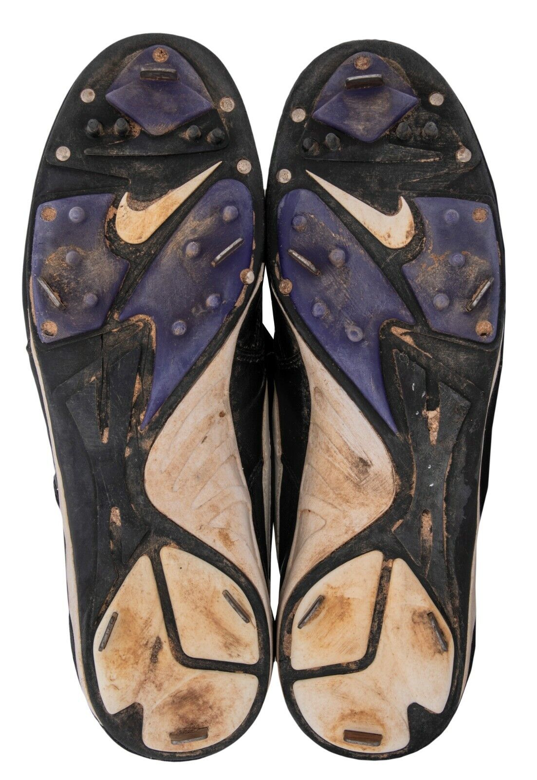 These offered Nike cleats are black, with white Nike logos sewn on both sides of the shoes. Martinez’s number “24” is handwritten in silver marker on both size 11 cleats. Six metal cleats are present on each sole. Martinez has signed the lace guard of each shoe in silver marker, inscribing “1998 World Champs” below each signature. The sneakers come with a LOA from J.T. Sports and a Steiner COA.