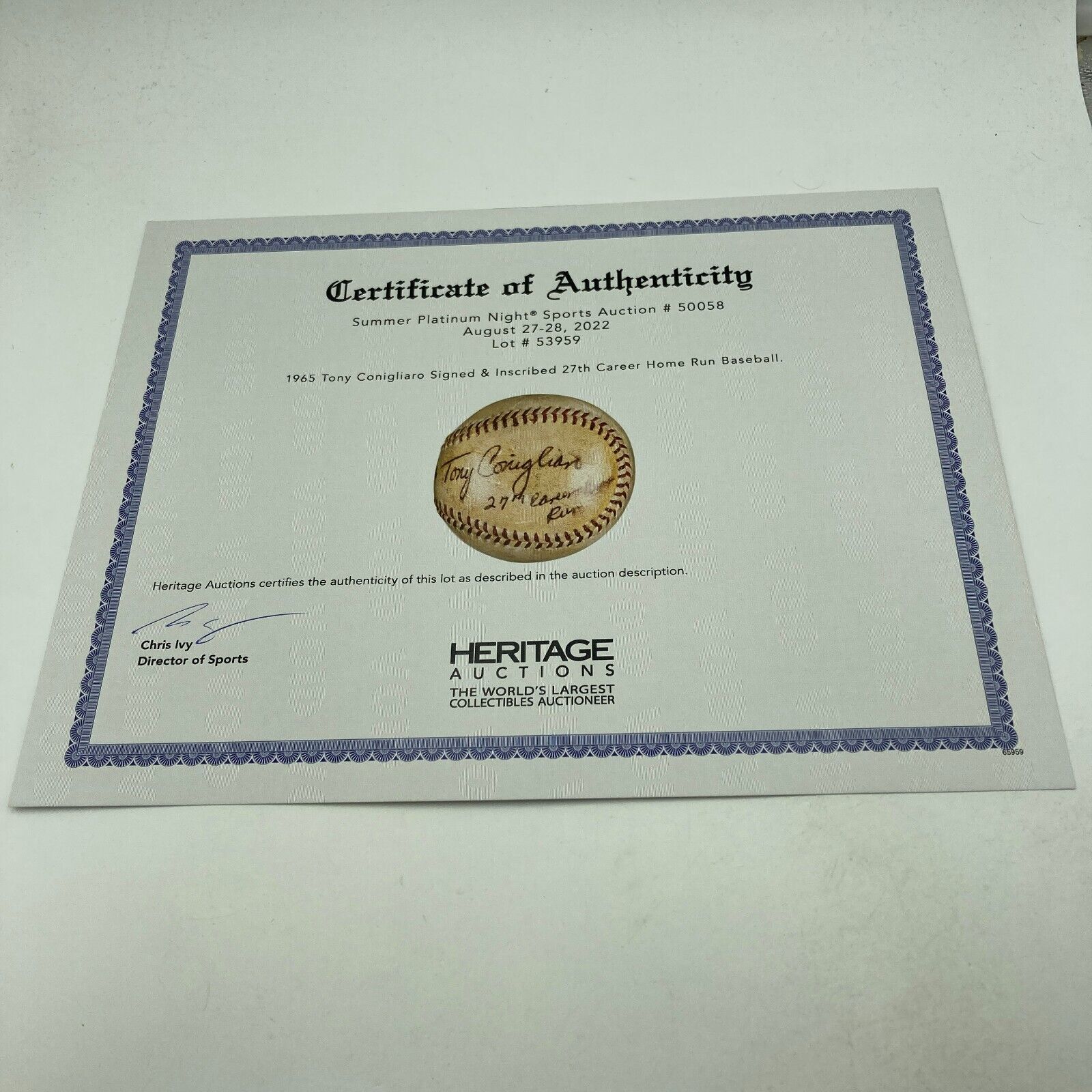1965 Tony Conigliaro Signed & Inscribed 27th Career Actual Home Run Baseball.