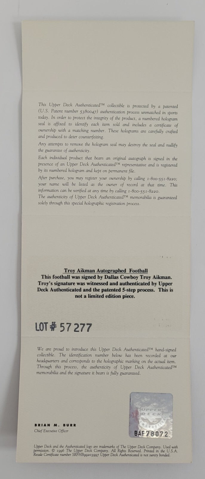 Troy Aikman Signed Official NFL Wilson Game Football UDA Upper Deck COA