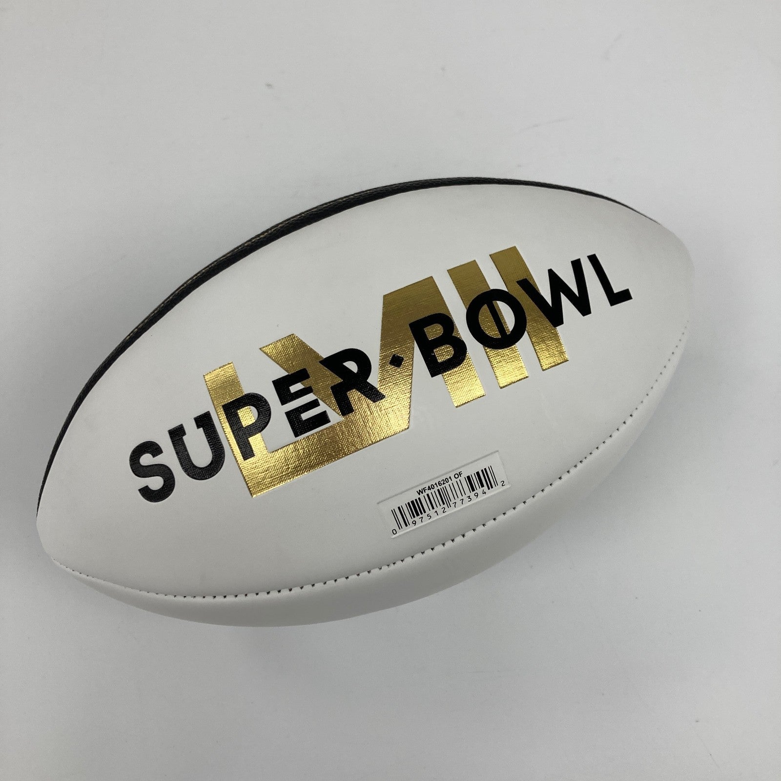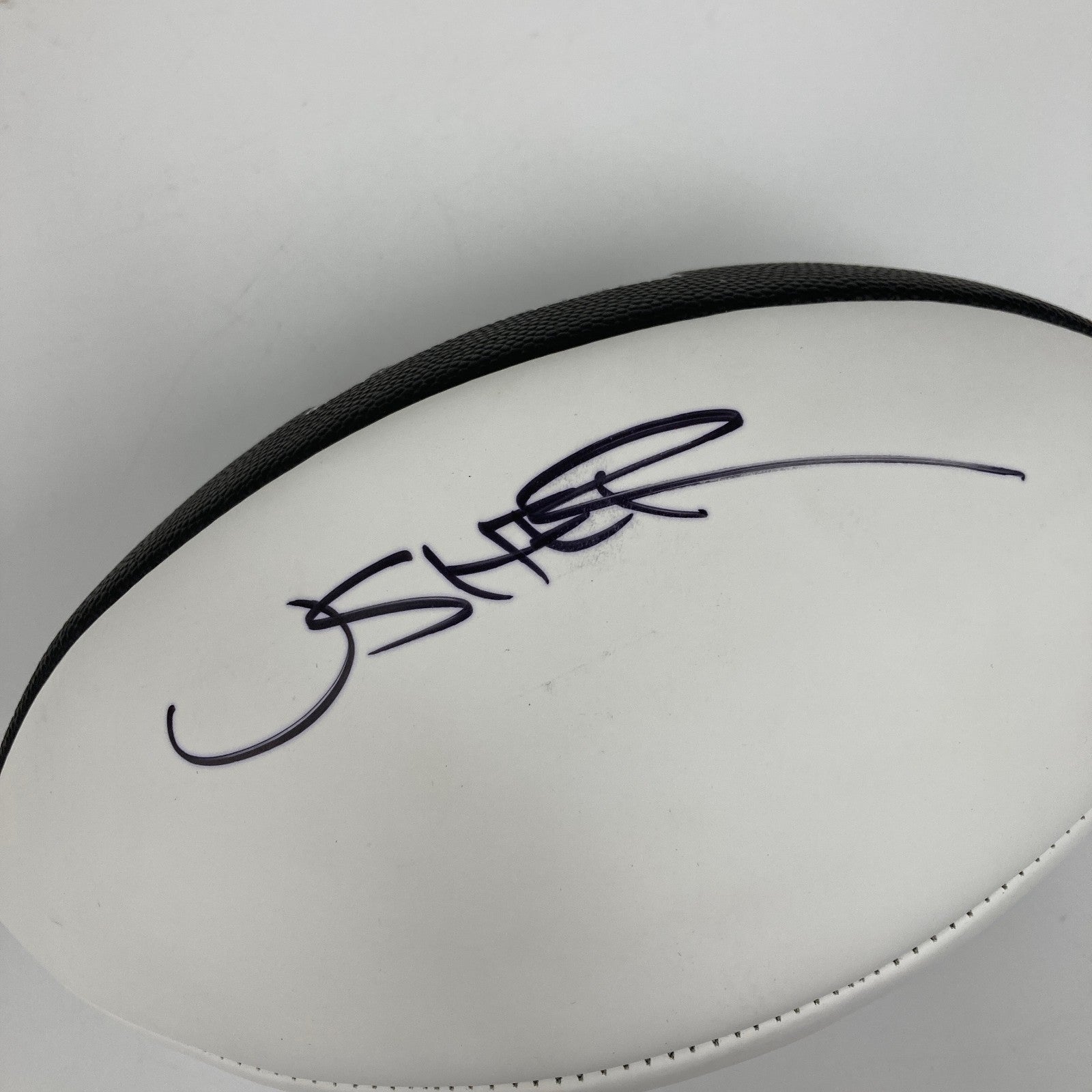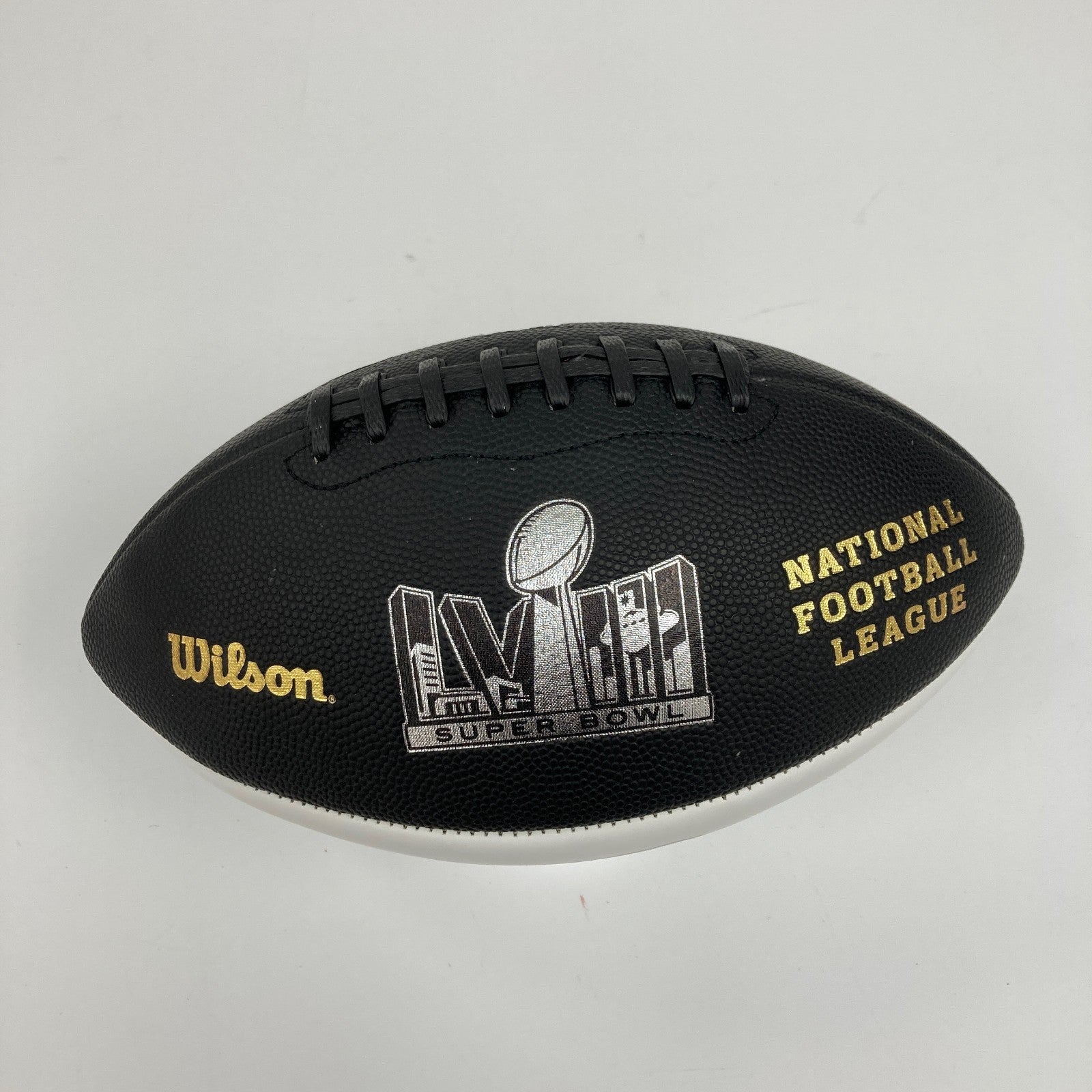 Usher autographed Super Bowl LVIII football (halftime performer). Wilson white panel commemorative ball signed by Usher in black marker. Includes COA from PSA DNA, with matching serial #ed sticker on the ball.