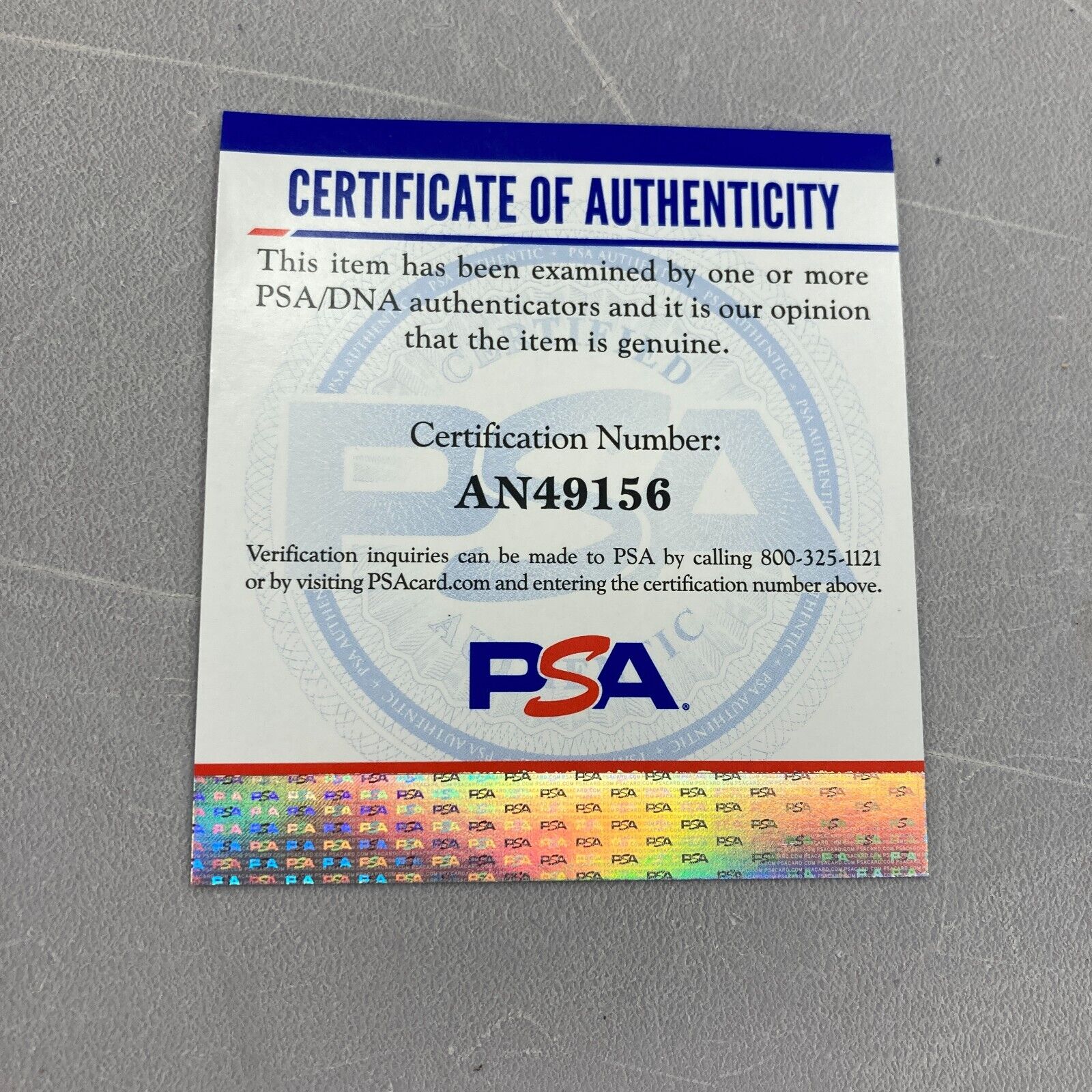 Known for using Titan TPM2020 model sticks during his time with the Edmonton Oilers in which he led to a quartet of Stanley Cup championships and took the game by storm, breaking and setting records seemingly every night that he played, offered here is this Titan made TPM2020 model twig signed by "The Great One", Wayne Gretzky. A vintage period correct Gretzky model stick that hails from the mid-1980s, a "Gretzky" name stamp appears over the upper shaft while a foil accent sticker is found wrapped around the shafts lower portion. Having never been taped and remaining in overall good condition considering its age, with marks found throughout the length of the shaft and blade plus a bit of adhesive residue over the backhand side of the shaft, the stick is likely one of the ones that the Oilers had made up for Gretzky to sign and then giveaway. Signed by Wayne over the forehand side of the blade with a vintage black marker ink signature that displays well and with only light fading, a PSA sticker numbered "AN49156" is affixed to the blade alongside the signature and is accompanied by a matching PSA COA.