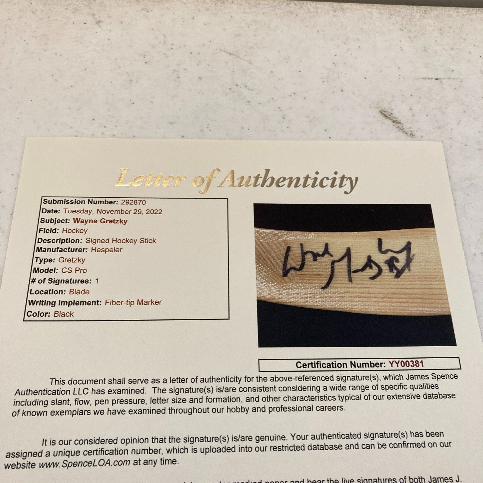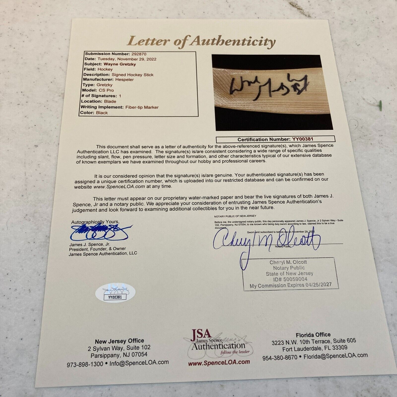 The Great One's name appears on the shaft twice—once next to the main Hespeler logo, once stamped on the wood section before the blade begins. But the main attraction is, of course, his prominent black-marker signature contrasting vibrantly off the wood background of the blade itself. There's a Jack the Gripper wrap at the butt end. A game-ready beauty in EX condition overall. Full LOA from JSA.
