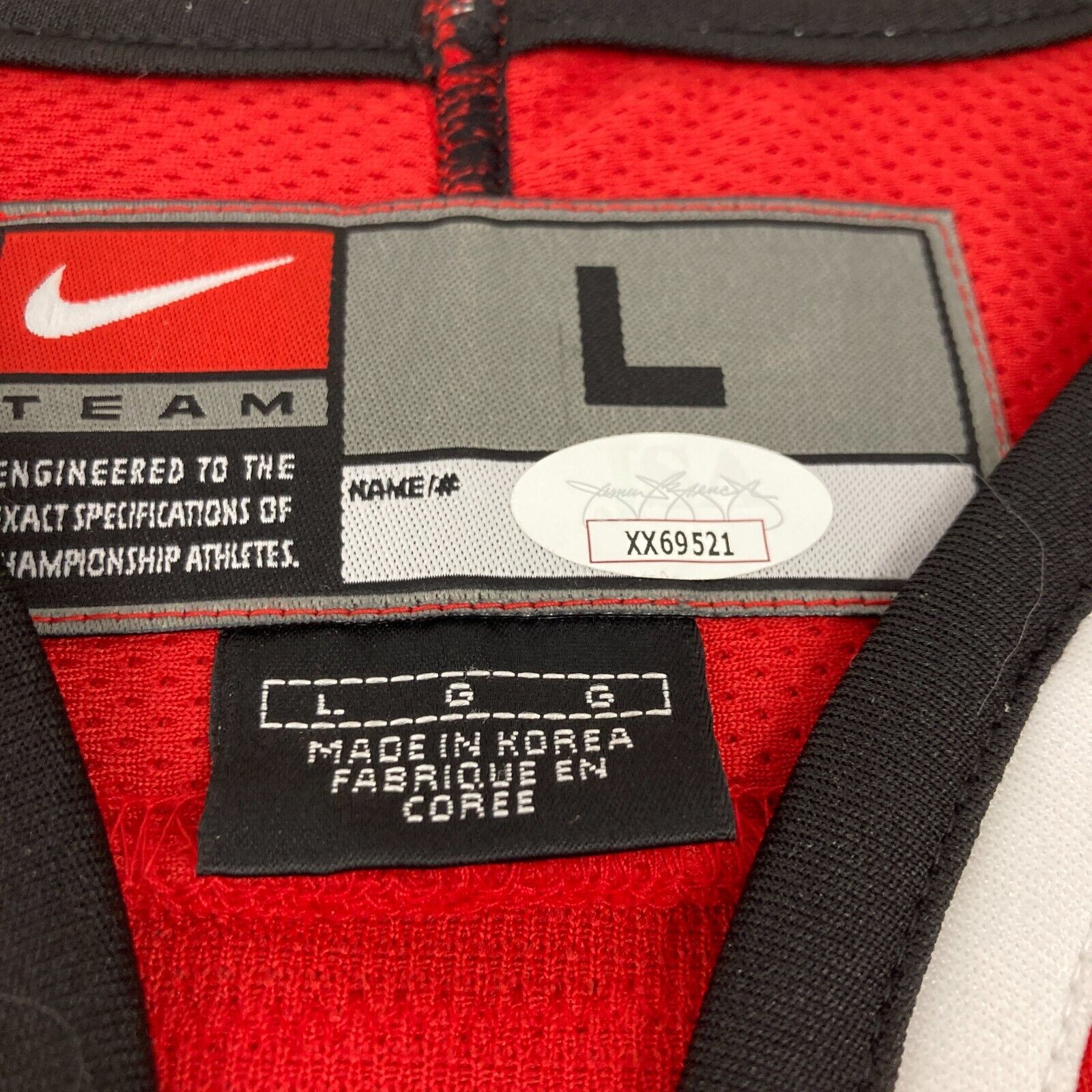 Proudly representing his nation, Wayne Gretzky helped Team Canada win three straight Canada Cup titles right through to assembling and guiding the legendary 2002 Olympic men’s team that won gold for the first time in 50 year at Salt Lake City. This Team Canada Olympic jersey has been signed by The Great One. Nike labeling with "L" sizing is affixed to the collar, with the jersey featuring a tackle twill Team Canada crest and numbers. Wayne has signed the team crest in black marker, with the signature displaying well