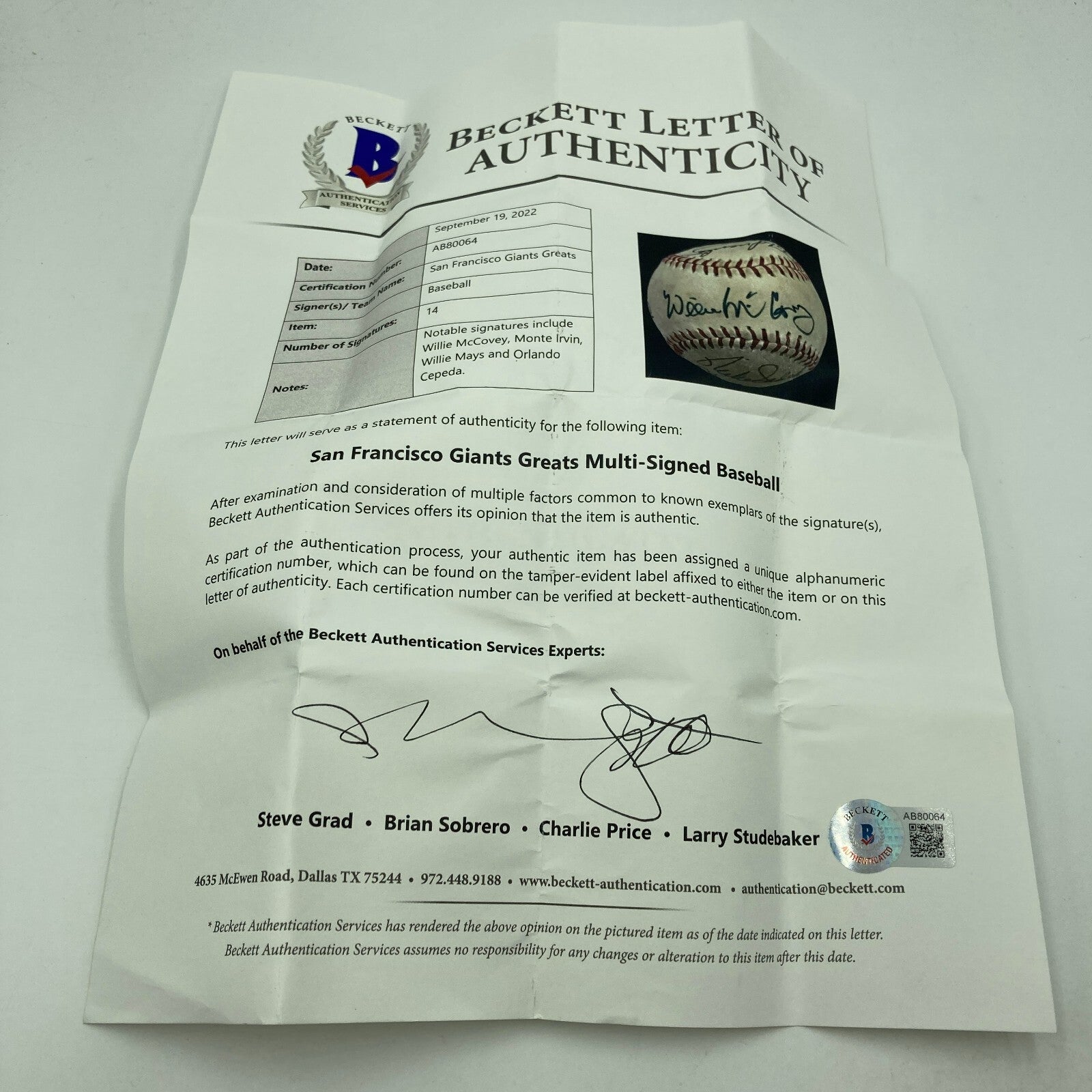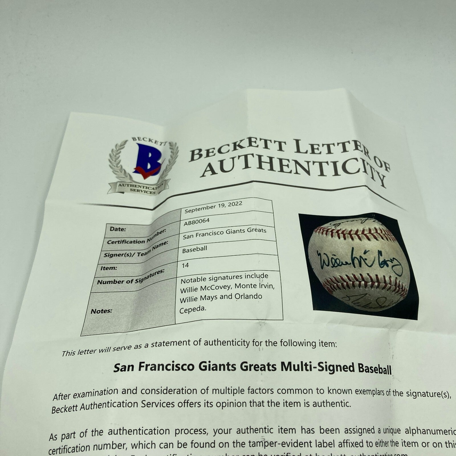 Willie Mays San Francisco Giants Legends Signed Baseball Beckett COA
