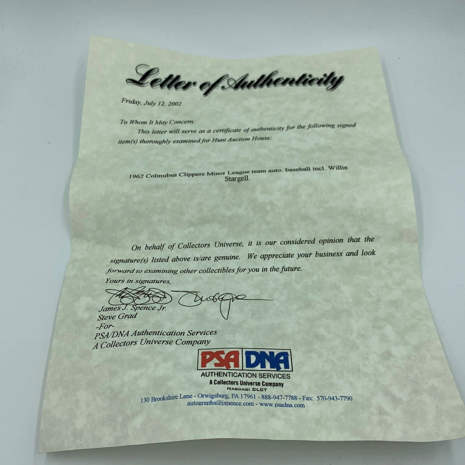 Willie Stargell Pre Rookie 1962 Columbus Jets Signed Minor League Baseball PSA