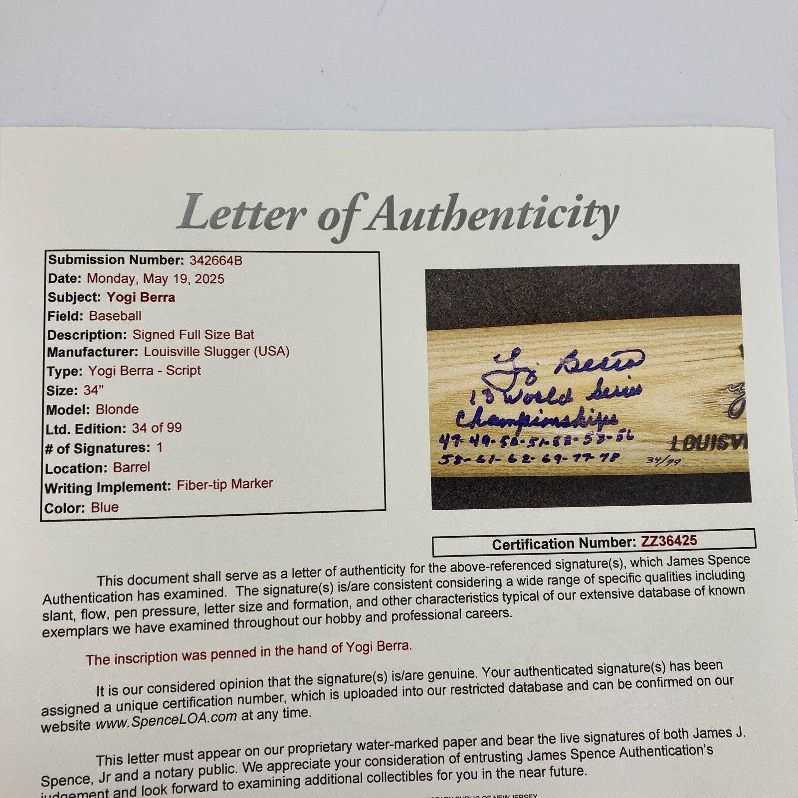 Click or scroll to zoom Tap or pinch to zoom Click or scroll to zoom Tap or pinch to zoom Click or scroll to zoom Tap or pinch to zoom Click or scroll to zoom Tap or pinch to zoom Click or scroll to zoom Tap or pinch to zoom Click or scroll to zoom Tap or pinch to zoom Click or scroll to zoom Tap or pinch to zoom Click or scroll to zoom Tap or pinch to zoom Yogi Berra Signed Heavily Inscribed STAT Game Model Baseball Bat JSA COA Sold out 1 2 3 4 5 6 7 8 9 10+ Quantity Quantity Sold out Yogi Berra Signed Heavily Inscribed STAT Game Model Louisville Slugger Baseball Bat With full letter JSA COA Bin #14